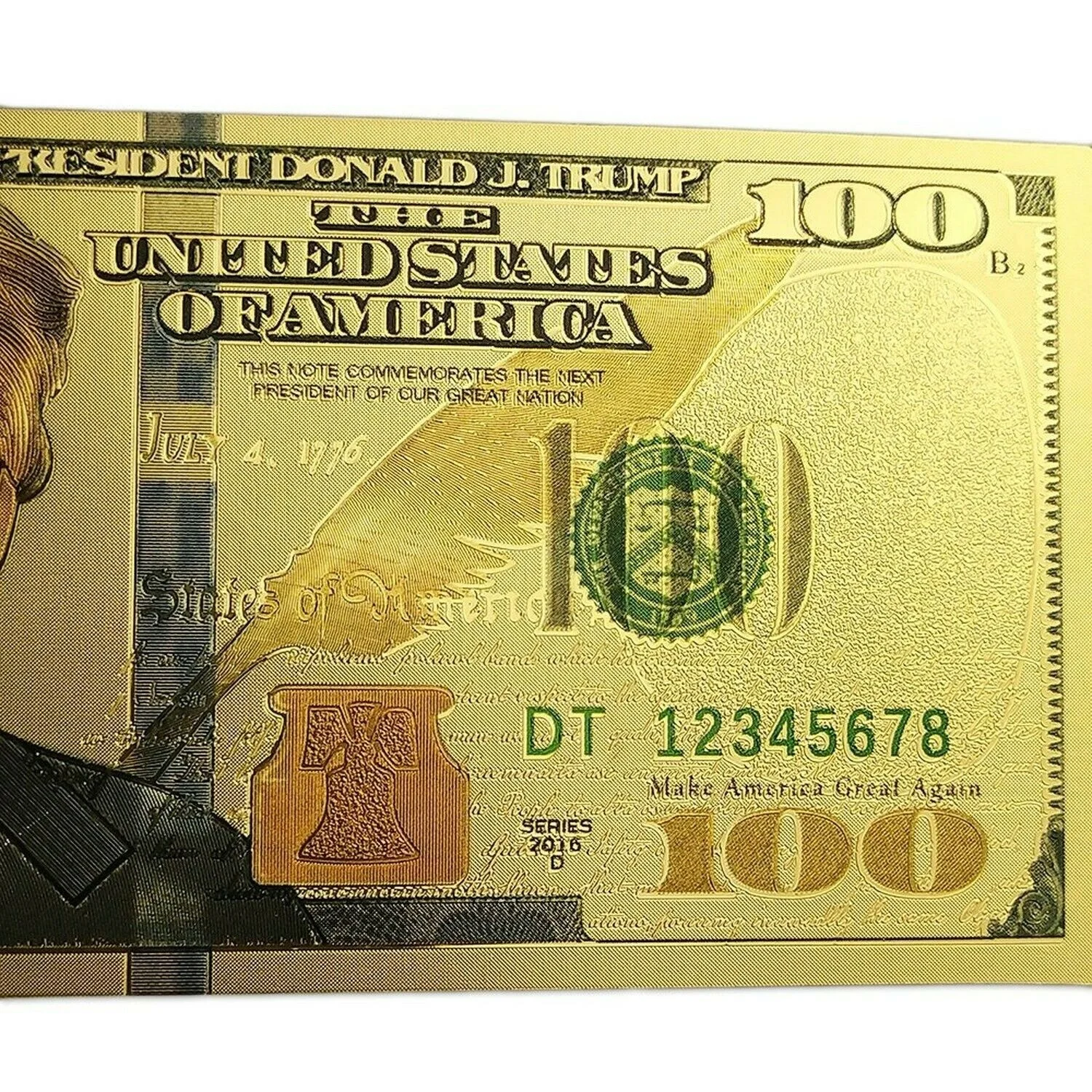 Дональд Трамп 100 долларов Золотая фольга банкнота для коллекционных подарков памятный 45-й президент США