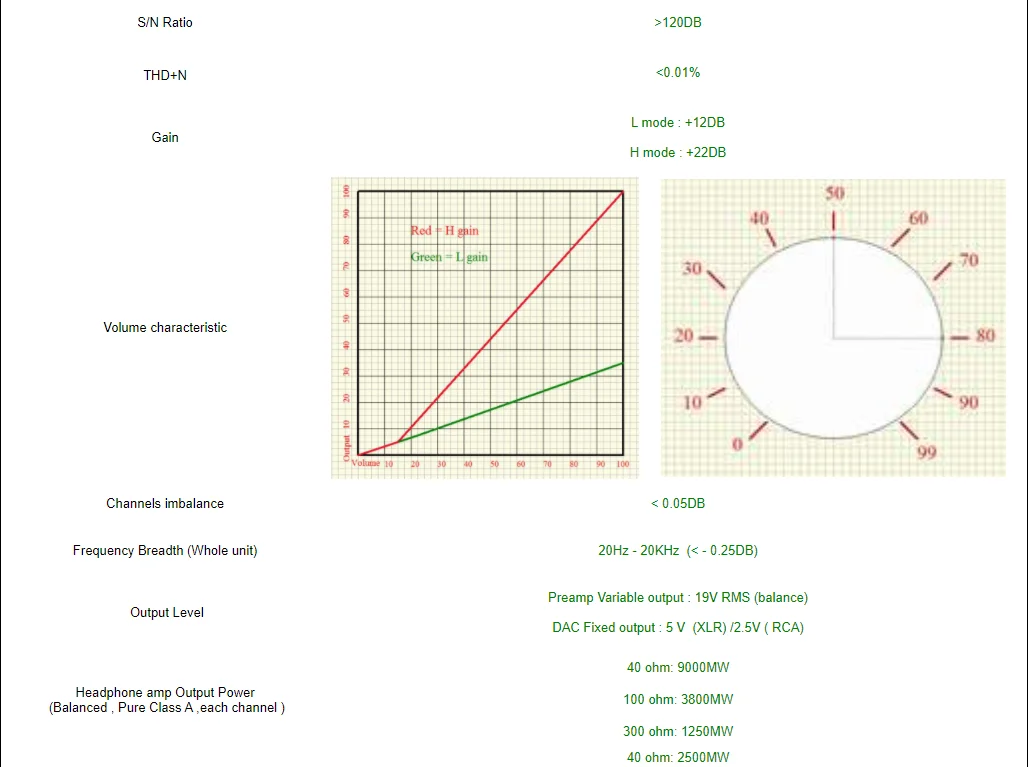 Высокий коэффициент усиления составляет 22 дБ, подходит для наушников с чувствительностью 95 дБ или менее и может полностью управляться даже наушниками с низкой чувствительностью, например HE6.