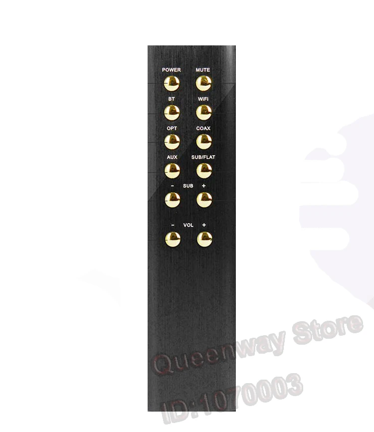 Функция дистанционного управления: питание, отключение звука, линия, Bluetooth, оптический, коаксиальный, WIFI, Громкость + - , бас/плоский