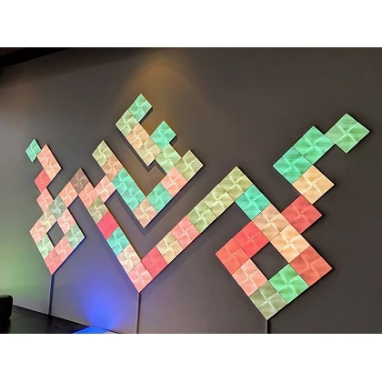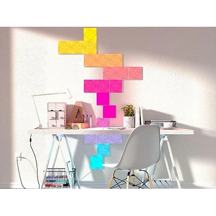 Умная система освещения Nanoleaf Canvas позволяет превратить вашу стену в холст, открывая полную свободу для творчества. Первые панели Nanoleaf были выполнены в форме треугольников и управлялись со смартфона. Новая система освещения состоит из 9 квадратных сенсорных панелей, которыми вы можете управлять касаниями. Панели также синхронизируются со смартфоном в мобильном приложении Nanoleaf Smarter Series, чтобы вы могли настраивать цвета, эффекты и сценарии, а также управлять системой удаленно. Кроме того, приложение позволяет настроить голосовое управление через Siri, Google Assistant или Amazon Alexa.