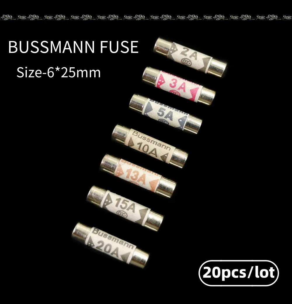 Product Detail Safety Standards:IEC Model Number:6*25mm 250V Material:Ceramics Usage:Automotive Type: BUSSMANNCeramic Fuse Material: metal, ceramic, electronic parts Rated voltage: 250 V Rated current: 2A 3A 5A 10A 13A 15A 20A Total size:6 x 25 mm Package Content 10pcs x Ceramic Fuse (ONLY one type as your choice.)