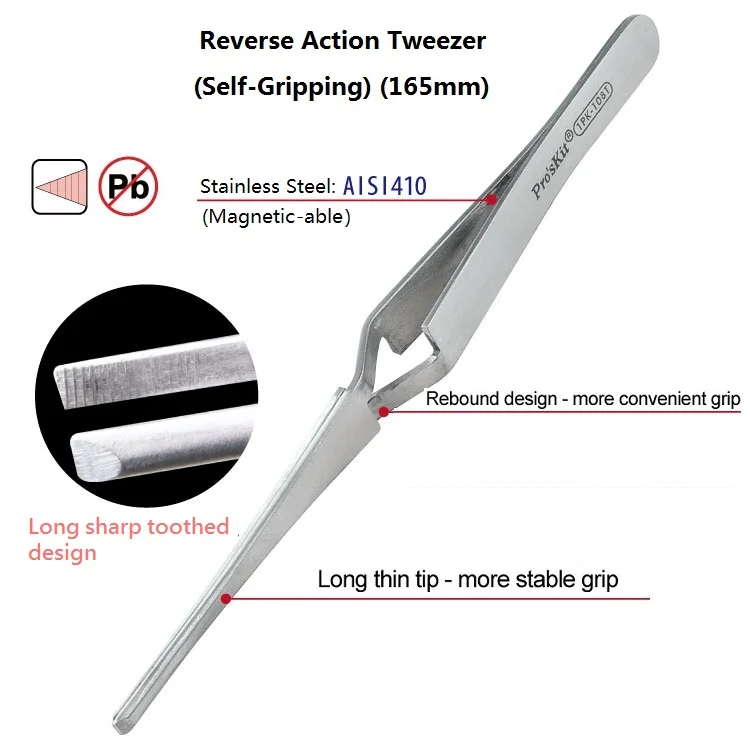 Пинцет с обратным действием Pro'sKit, Magneticable с самозахватом, прецизионный инструмент для ремонта