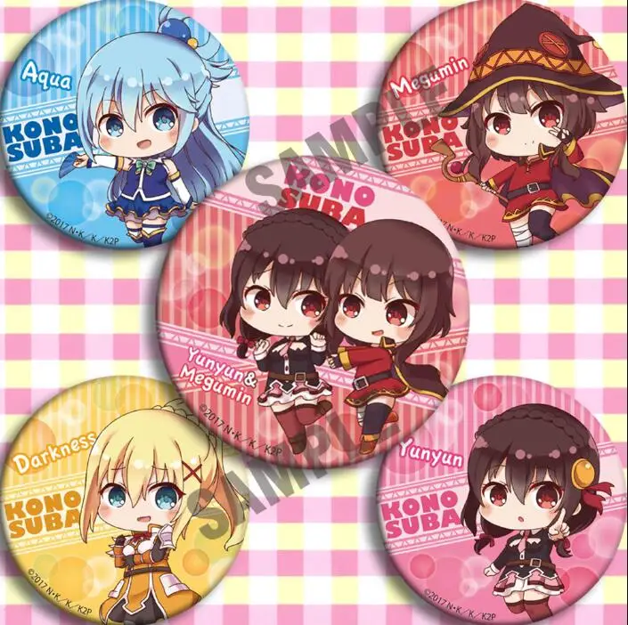 5 шт/1 лот аниме Konosuba Aqua Megumin Darkness Yunyun фигурка 5074 значки круглая брошь булавка подарки детская игрушка