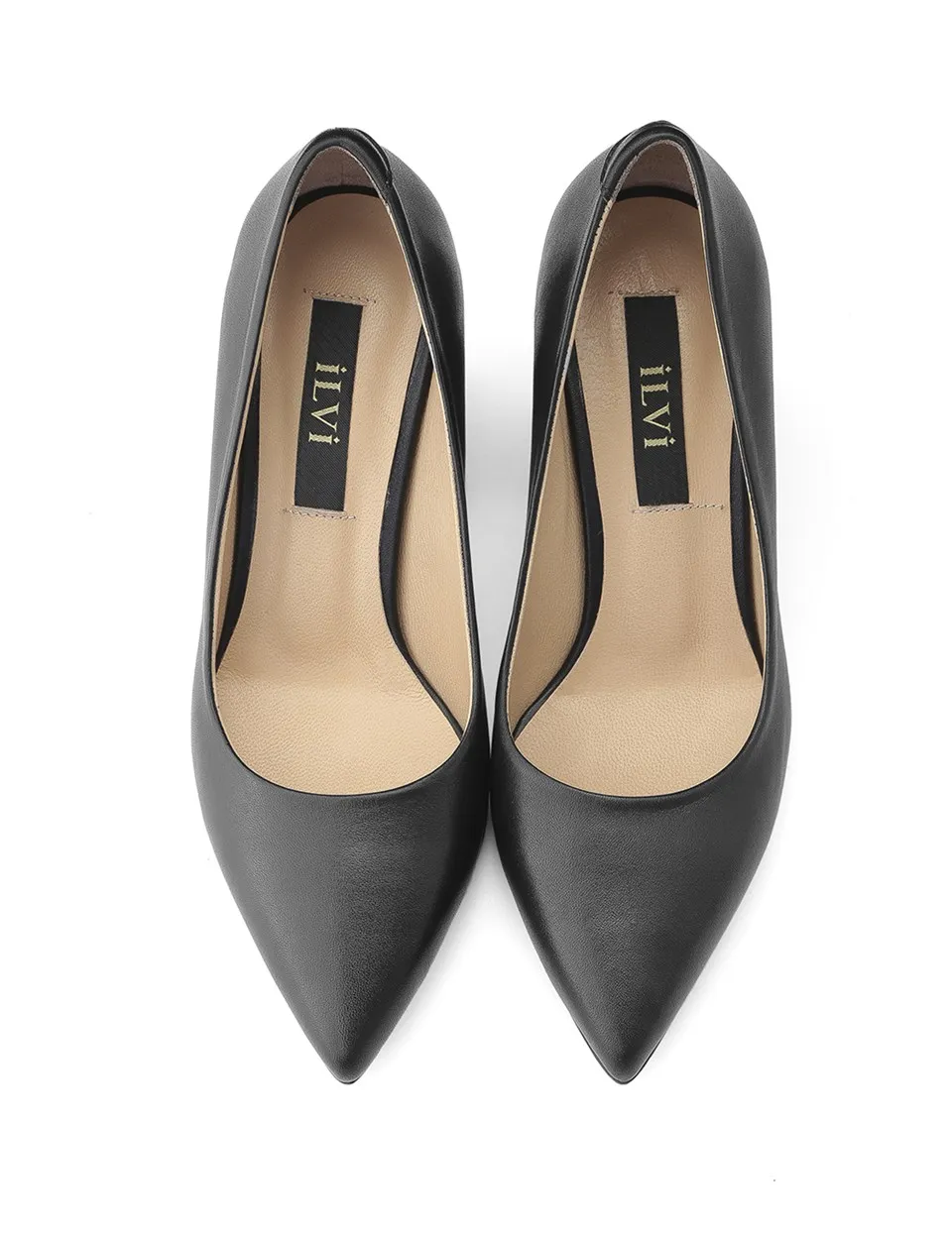 Черный кожаный женский насос Изготовлено из высококачественной телячьей кожи. Высота каблука: 8 см Подошва: неолит-он более прочный и прочный, чем кожаная подошва. Он Небьющийся Ручная работа Сделано в Турции. Рисунок носит размер 36.