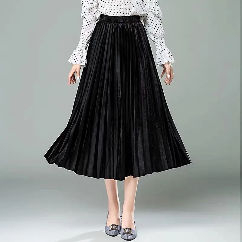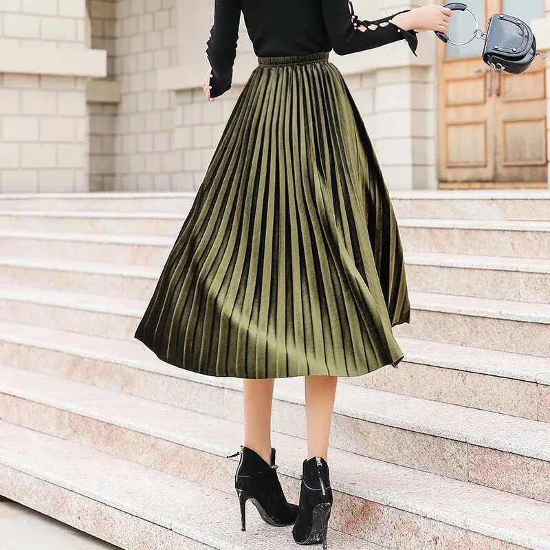 RuiLee шикарная офисная элегантная женская длинная Серебристая плиссированная юбка макси миди с высокой талией, Повседневные Вечерние юбки Elascity