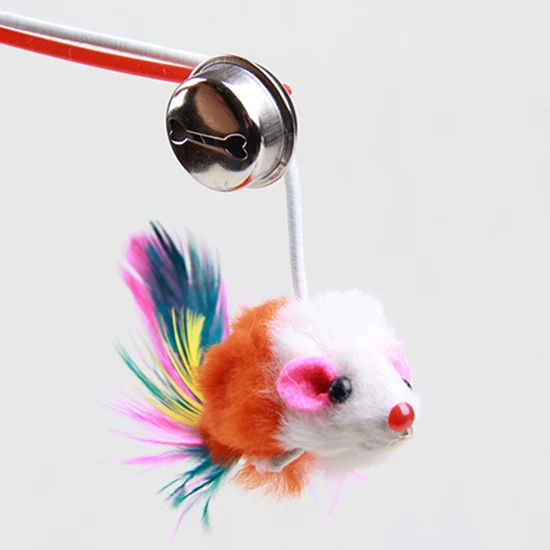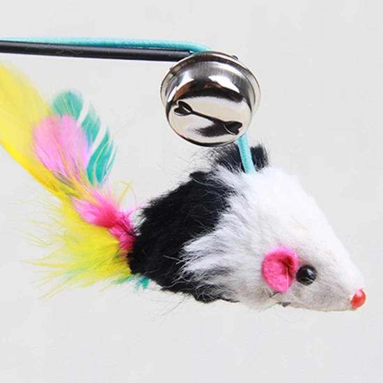 Животное кошка колокольчик болтается искусственная мышь перо стержень пронзили Смешные забавные игрушки для игры