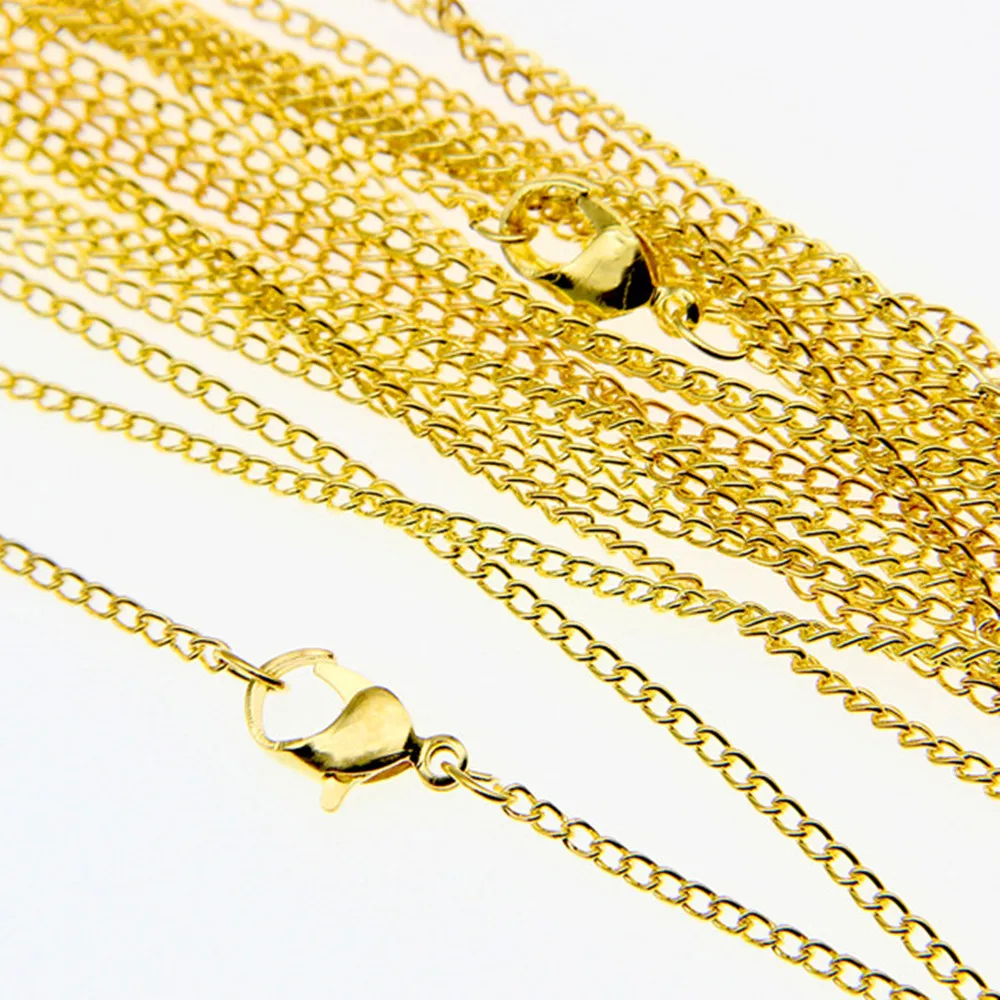 Лот из 50 шт. Серебряная/позолоченная цепочка с застежкой 22 ",2 мм