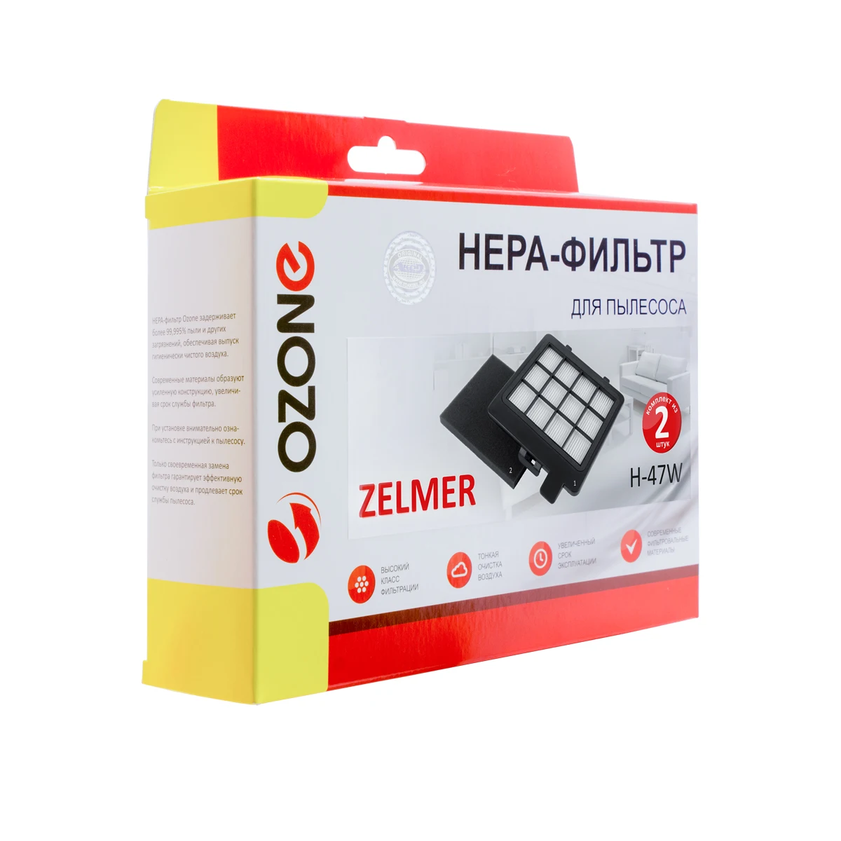 Комплект фильтров для пылесоса ZELMER, НЕРА фильтр-1 шт., губчатый фильтр-1 шт., многоразовый моющийся, бренд: OZONE, арт. H-47W, тип оригинального фильтра: A601210128.0