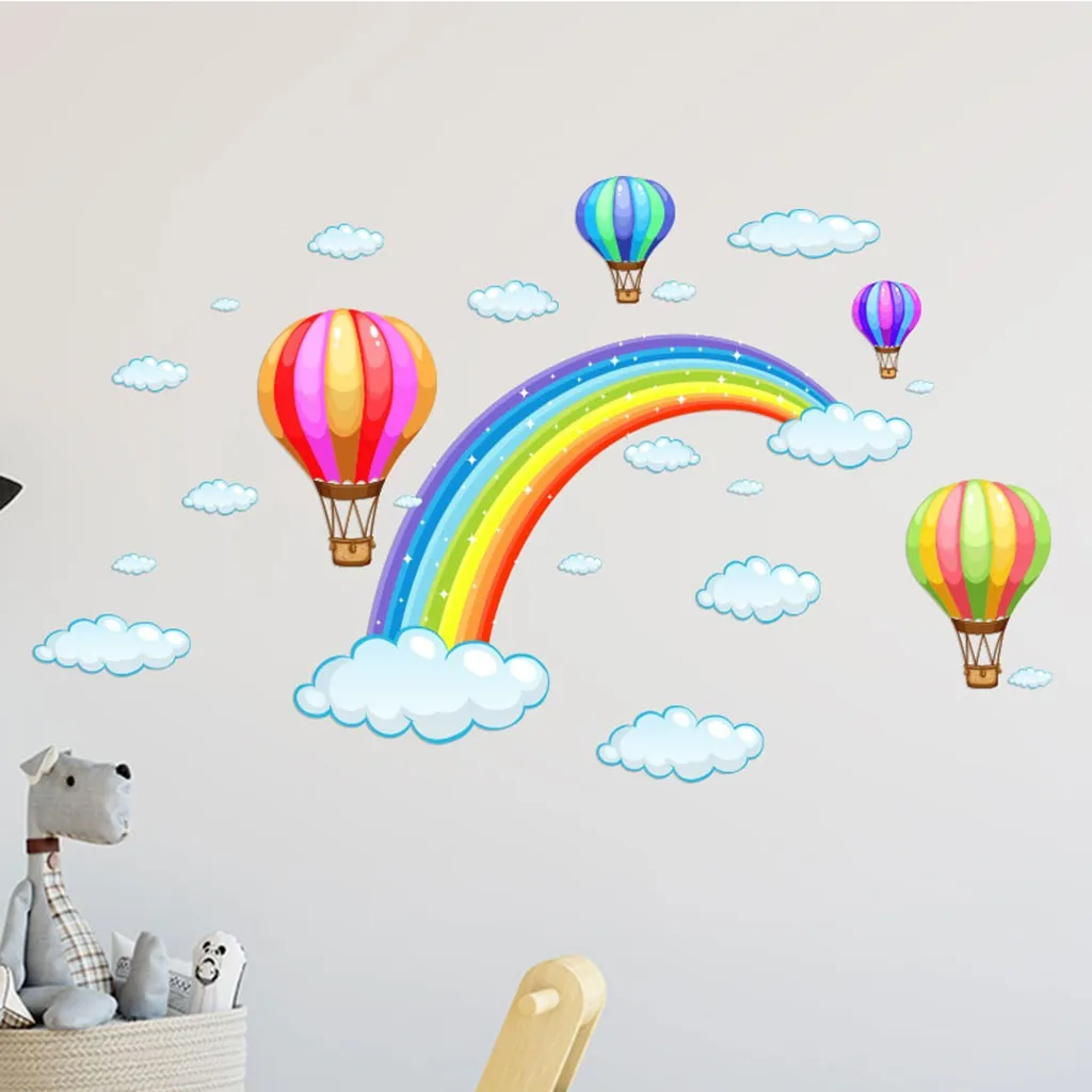 Наклейки на стену с радужным узором, домашние украшения, наклейки на стену с мультипликационным принтом, съемные