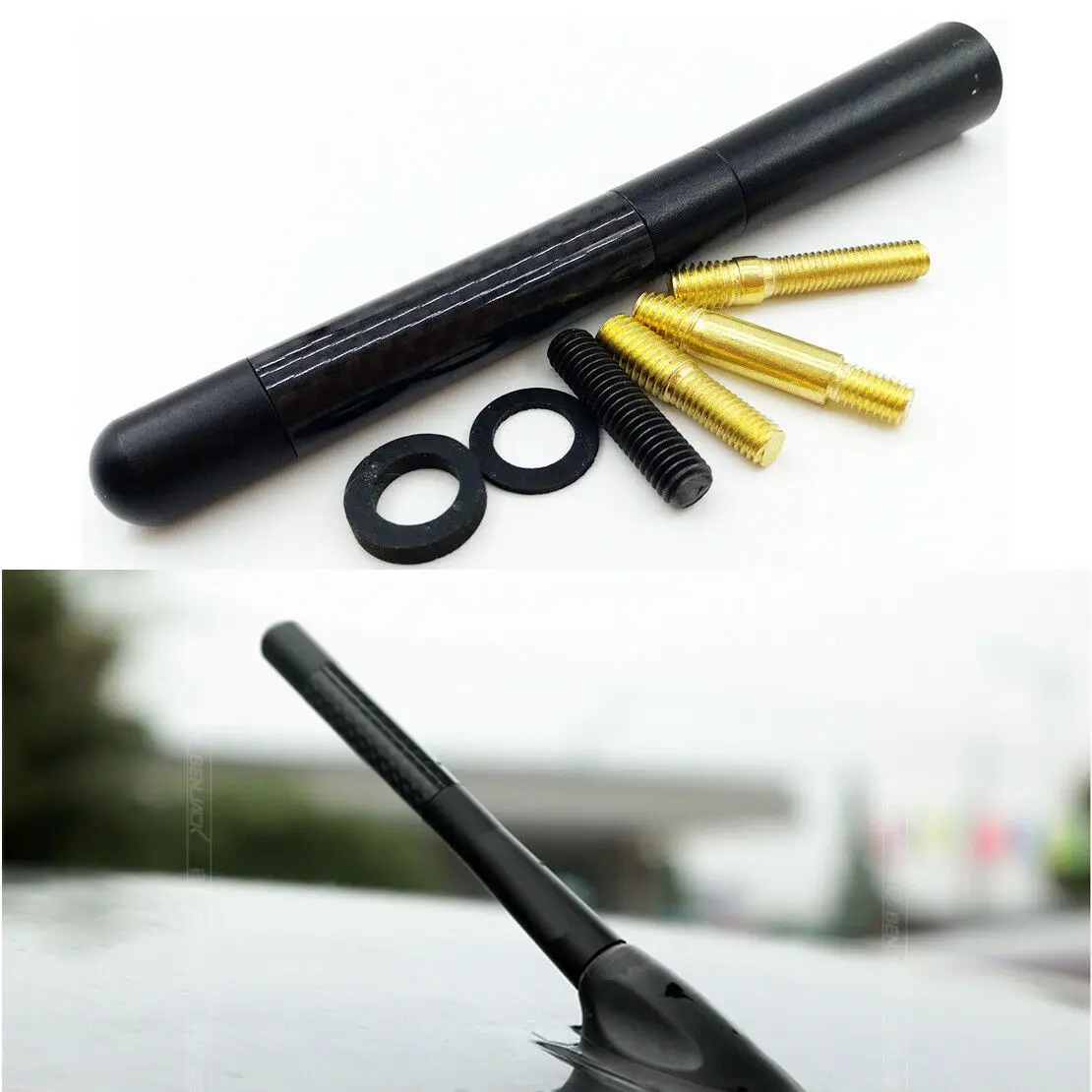 Особенности: L Эта антенна функциональна и предназначена для радиосигнала AM/FM. L углеродное волокно с принтом придает уникальный внешний вид. L поставляется с 4 винтами разного размера и 2 универсальными адаптерами. L заменяет на наличие мачты/кнут антенны с OEM качеством. L Прямая замена болта, никаких изменений не требуется.