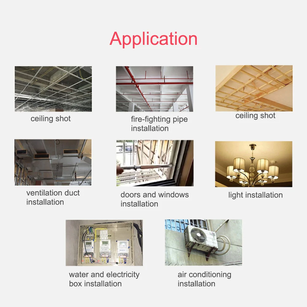 Подходит для светильник стальной киль потолка; Мосты установки; Крепежная Скоба; Анти-кражи для установки окон; Деревянный крепления; Кондиционирование воздуха установка и т. д.