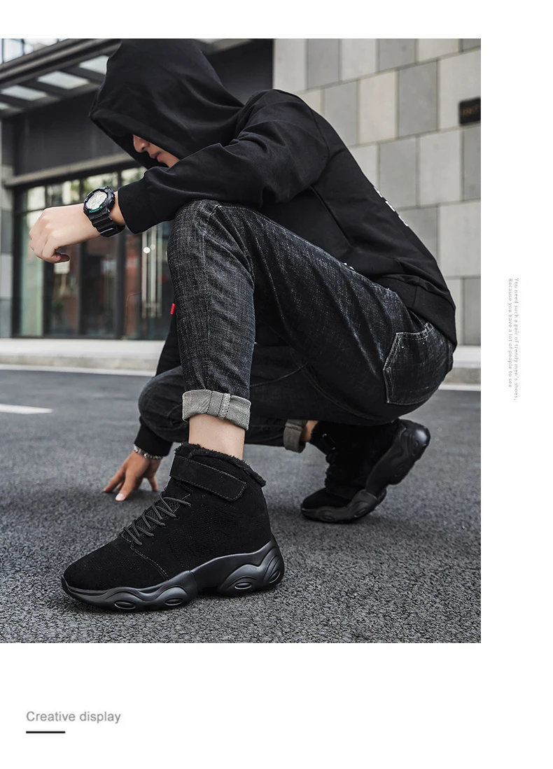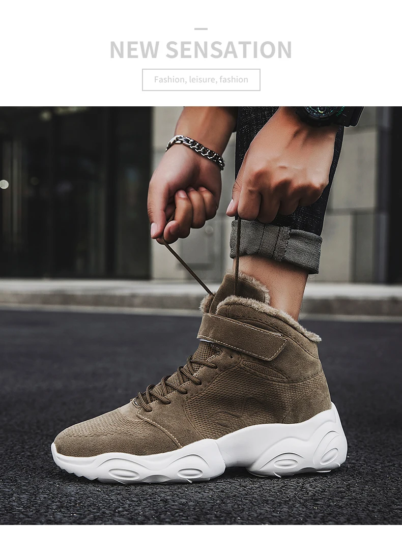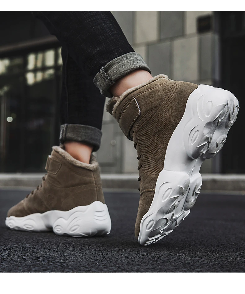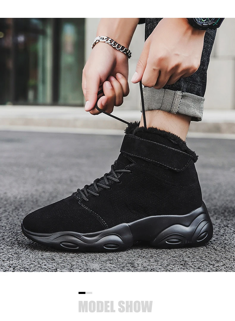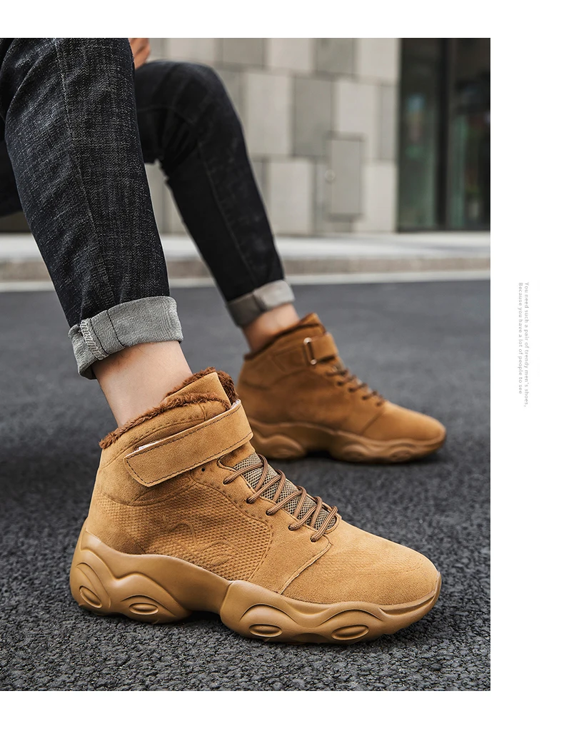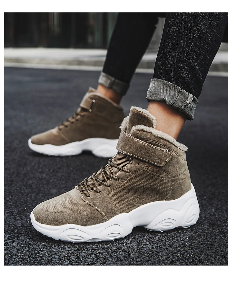 Новая Толстая плюшевая зимняя обувь, мужские Модные ботильоны для мужчин, высокие кроссовки на платформе, теплые ботинки ручной работы, мужские ботинки размера плюс 46