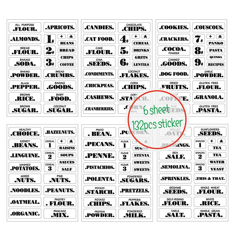 2,6 листа/уп наклейки для ногтей с изображением, полностью 132 наклейки, 132 наиболее распространенным Кухня Этикетки ингредиенты:132 этикетки с ингредиентами, обнаруженными на каждой кухне! От муки любого назначения до кофе, до зерновых или макаронных изделий.