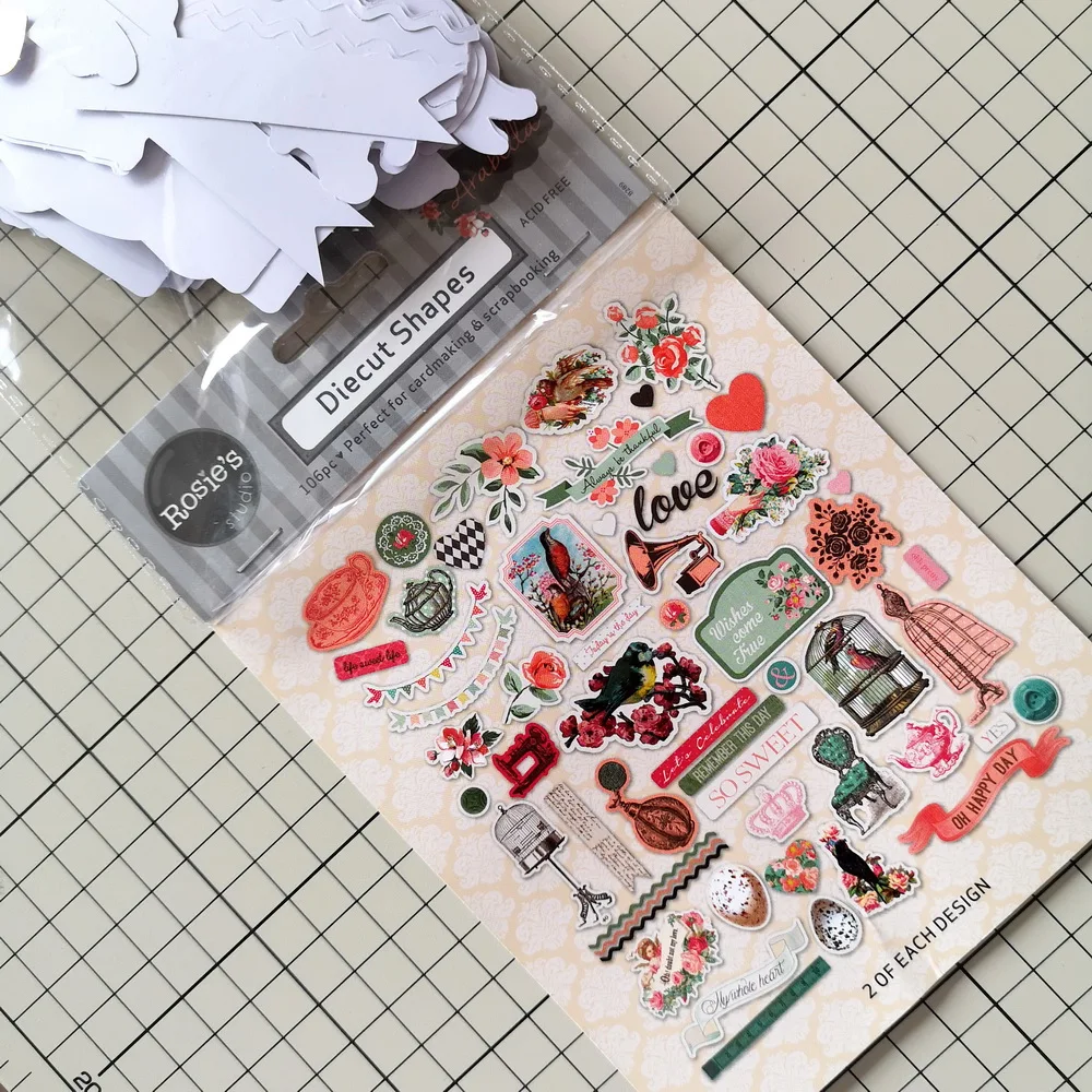 106 шт бумаги diects с красивым дизайном печати и некоторые с фольгой отделки. 2 шт. каждого дизайна.