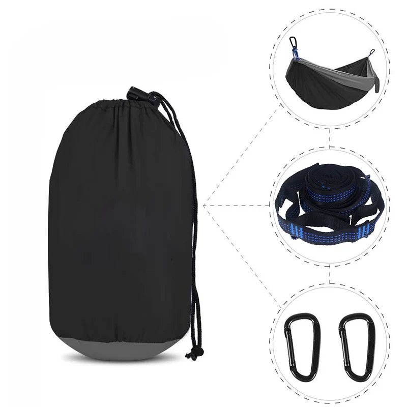 Гамак для кемпинга и пеших прогулок: Легкий Парашют для кемпинга изготовлен из нового нейлона 210T, мягкий и дышащий, приятный для кожи, удобный для отдыха, легко моется и быстро сохнет после мочи.