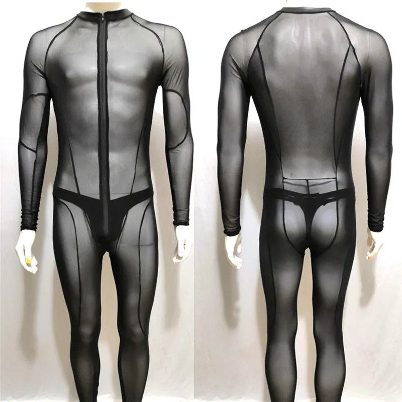 Мужской сетчатый облегающий Костюм Тедди боди Черный Прозрачный Эротическое белье Боди цельный комбинезон