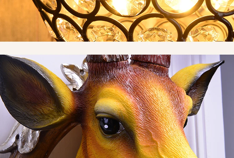 Желтый рога настенный светильник голова оленя Кристалл Бра камин настенный светильник в гостиной спальни лобби отеля ресторана