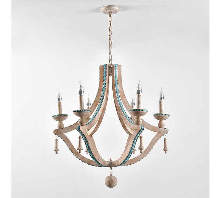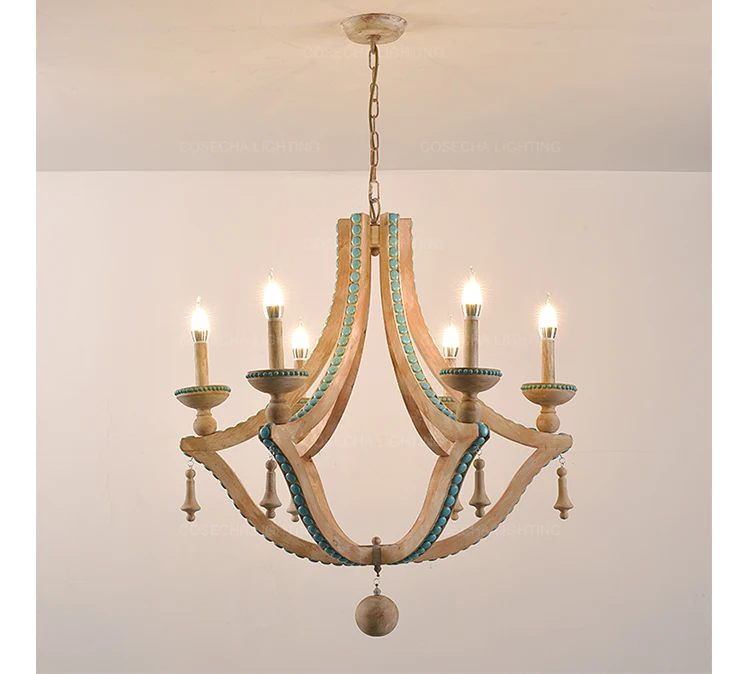 Solid wood chandeliers nordic turquoise lighting loft decor living room foyer chandeliers lobby bohemian european light fixtures