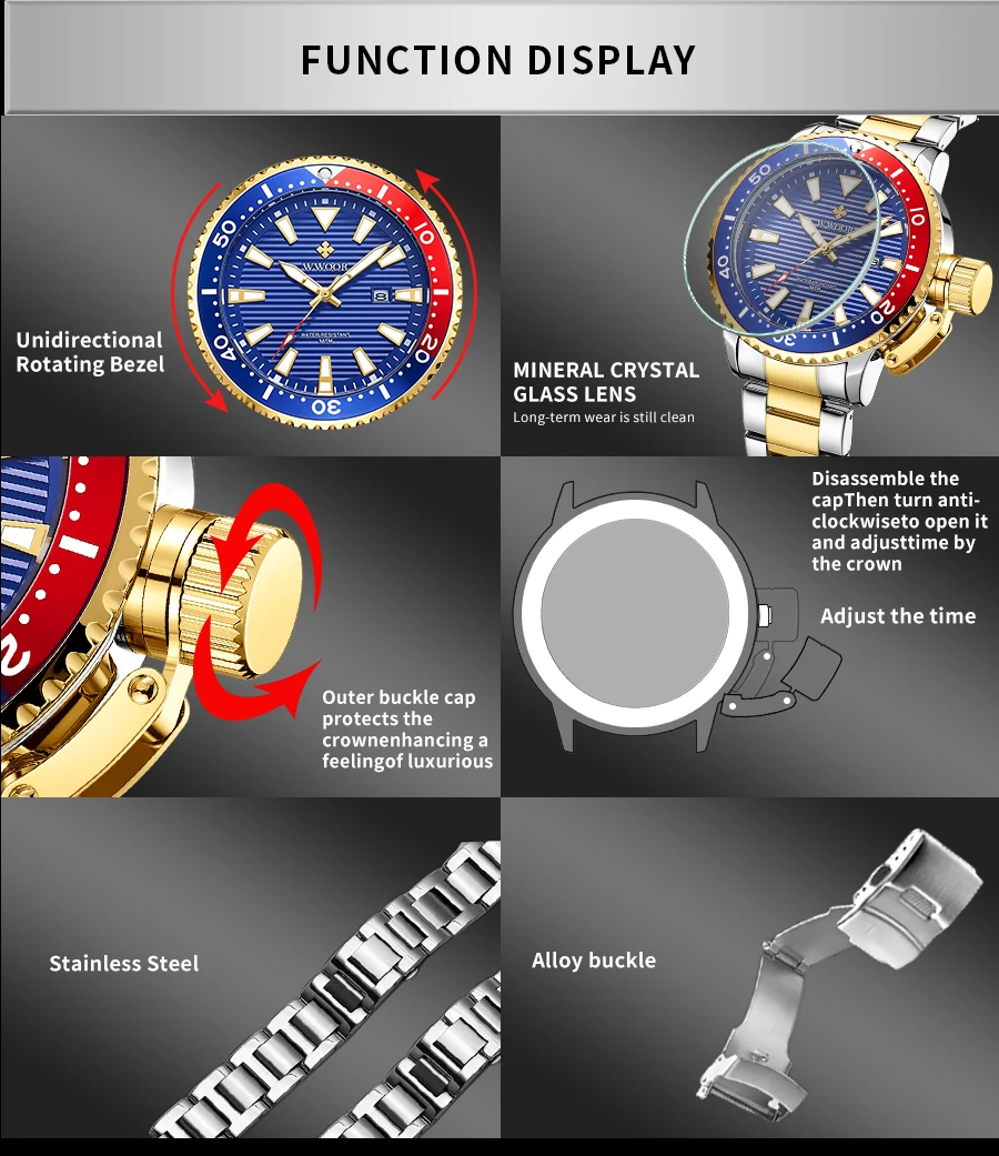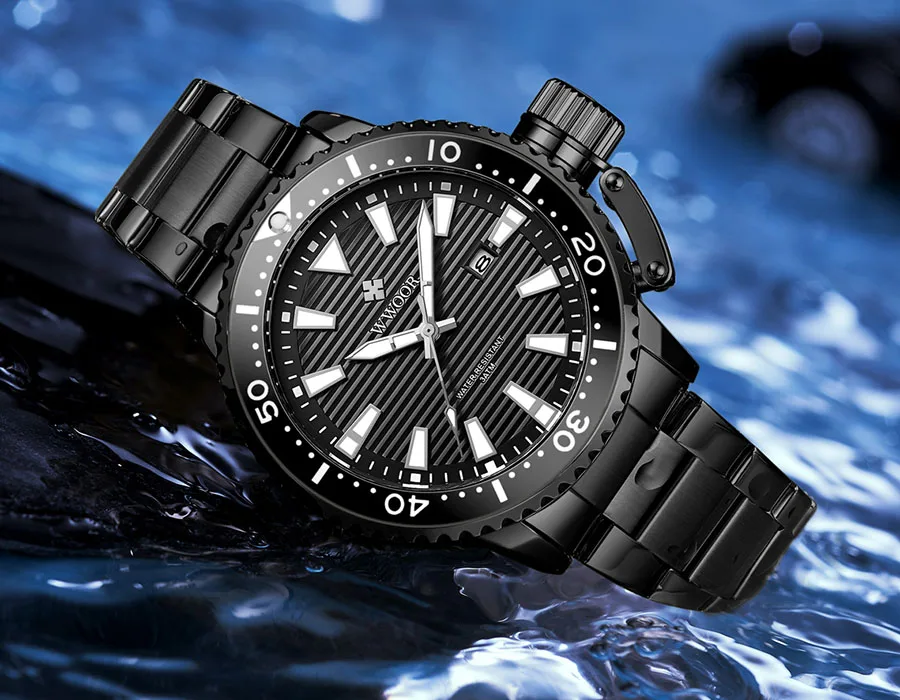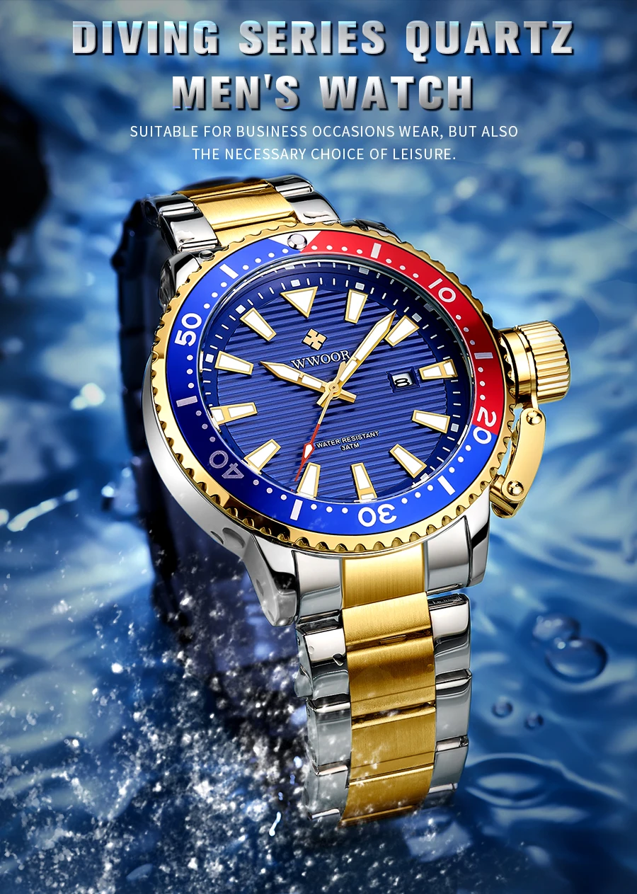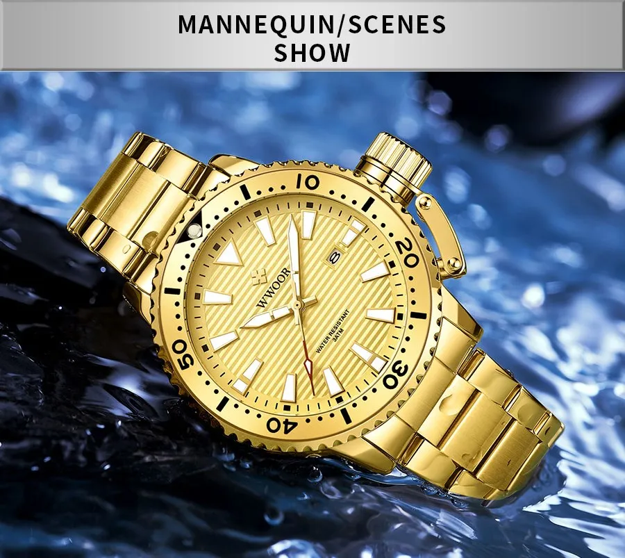 Особенности: Оригинальные часы WWOOR 100% новый с биркой и качественным квартаном; 3 АТМ Водонепроницаемость (вы можете использовать его во время дождя и мытья рук, не поддерживает горячую воду и плавание); С функцией подсветки, с отображением даты; Идеально подходит для любого вида бизнеса, повседневного, спортивного, внутреннего или повседневного использования. Характеристики: Товар: мужские часы Функция: светящийся, календарь (дата), водонепроницаемый Материал корпуса: сплав Материал ремешка: нержавеющая сталь Механизм: кварцевые часы Параметры: (около) Диаметр циферблата: 45 мм Чехол Толщина: 13,5 мм Часы Длина: 22,5 см Ширина ремешка: 20-22 мм Водонепроницаемость: 3 бар Вес: 142 г Посылка включает в себя: -Часы WWOOR-1 шт. -1 x Подарочная коробка WWOOR -1 x чистая ткань -1 x регулятор ремешка часов