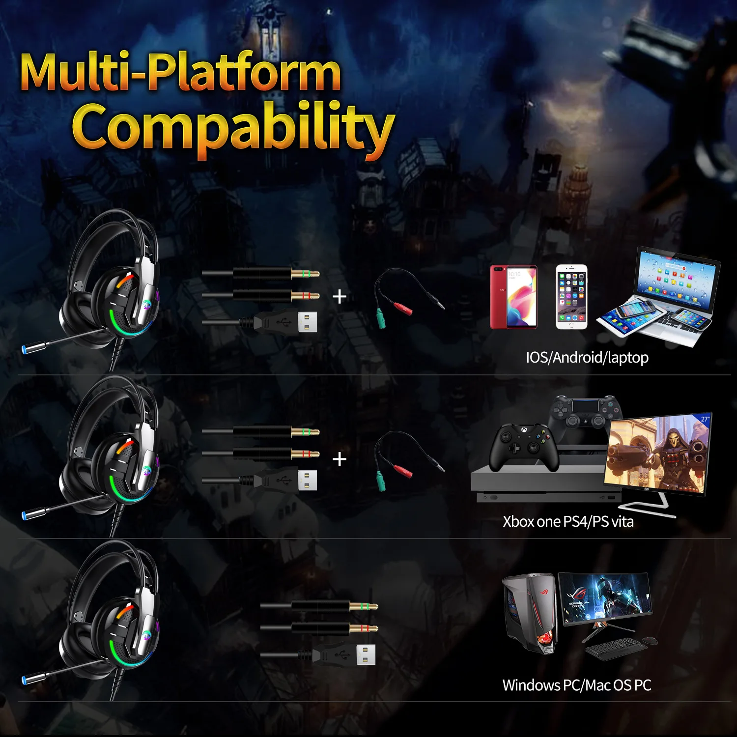 ◆Durability Игровая гарнитура A18 RGB marquee-это супер прочная гарнитура со стильным внешним видом. Он изготовлен из черного матового пластика и хромированной отделки, а некоторые из них имеют резиновый вид. Он достаточно прочный, чтобы стоять в вертикальном положении в DJ-будке и носить его часто.