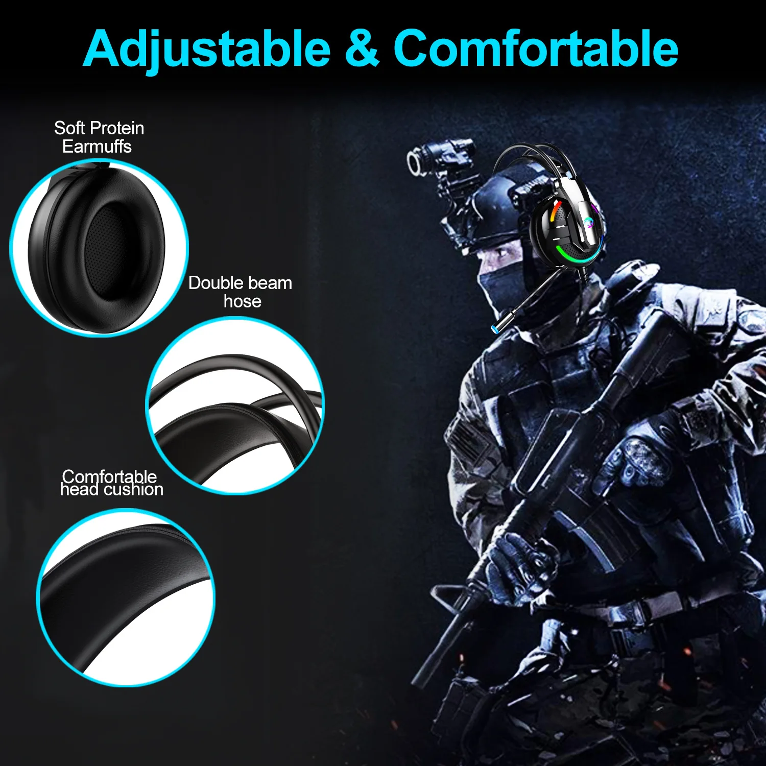 ◆Foldable дизайн Игровая гарнитура A18 RGB marquee представляет собой гибкую гарнитуру, которая может быть естественным образом настроена на любой размер гарнитуры. Для мониторов monaural амбушюры можно поворачивать влево и вправо. Кроме того, его можно сложить в плоскую и поместить в дизайнерскую сумку, когда