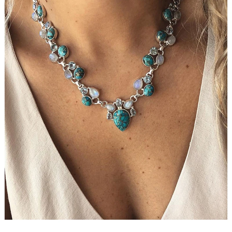 Модный Цвет Бохо белый зеленый цветы заявление ожерелья бусы Подвеска Чокер ожерелья для женщин Bijoux