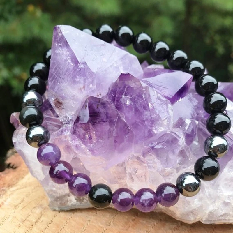Аметист, черный обсидиан, гематит высокого качества стрейч браслет с гладкой 8 мм драгоценных камней бусины. Пожалуйста, обратите внимание, что цвет и оттенок камня могут отличаться, так как мы работаем с настоящими камнями. Защитите себя от энергии вампиров с помощью этого защитного браслета на заказ!