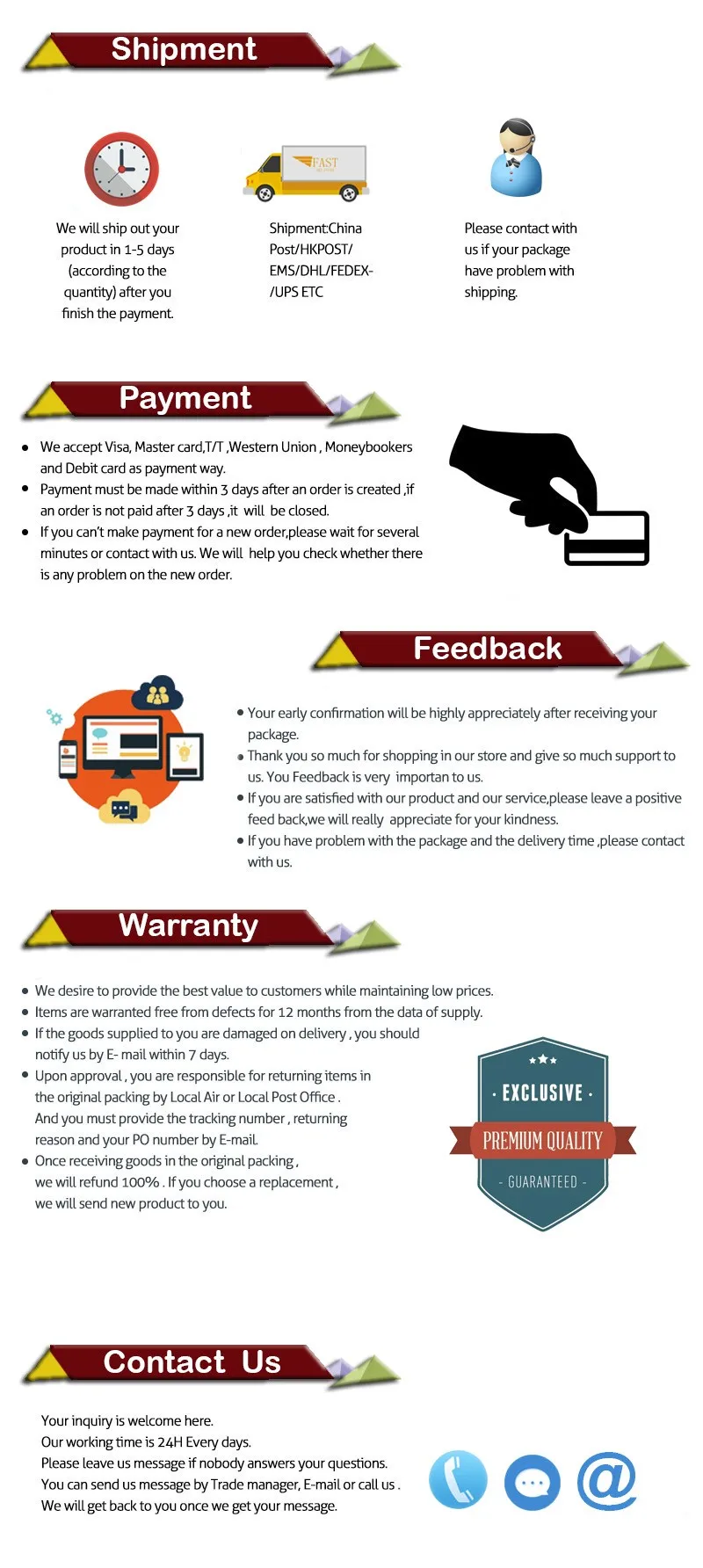 1. Если вы не можете убедиться, что установка, пожалуйста, самостоятельно запрос или предложить модель мотоцикла, чтобы проверить его. 2. Если вы не предлагаете модель мотоцикла для проверки, мы думаем, что вы знаете fitment на 100%. И мы не будем платить за возврат за не подходит. 3. Пожалуйста, измерьте размер установки перед покупкой, чтобы получить наиболее подходящие продукты. 4. Пожалуйста, имейте в виду, что 0,5-1 дюйм сделаны вручную, поэтому возможны отклонения на измерения (1 дюйм = 2,54 см). 5. Пожалуйста, внимательно проверьте внешний вид товара, размер, форму, а затем сравните ваши оригинальные товары перед заказом, спасибо.