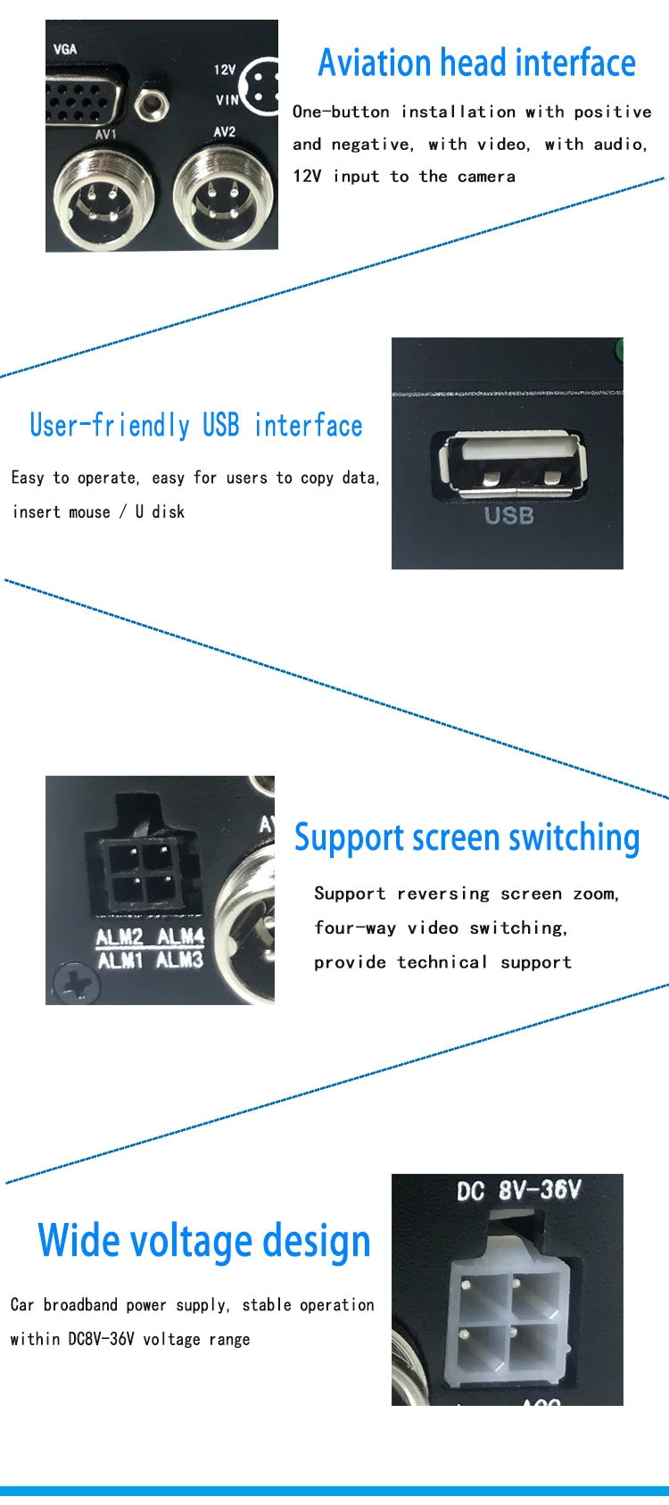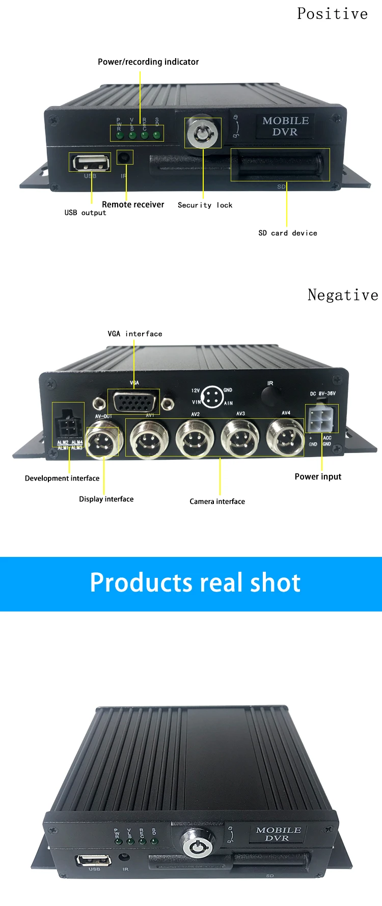 Примечание: 4 канала, 6 каналов и 8 каналов являются дополнительными; 3G 4G GPS WiFi являются дополнительными. Все устройства имеют черный цвет