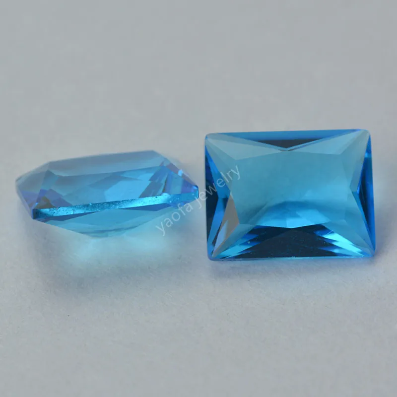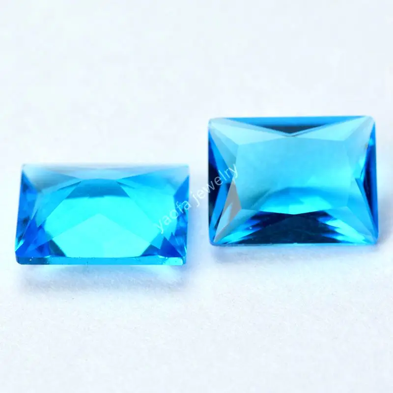 Оптовая продажа 2x3 ~ 13x18 мм светильник морской синий Аквамарин лабораторные драгоценные камни прямоугольной формы багет вырезать Свободно сидящий стеклянный камень для ювелирных изделий
