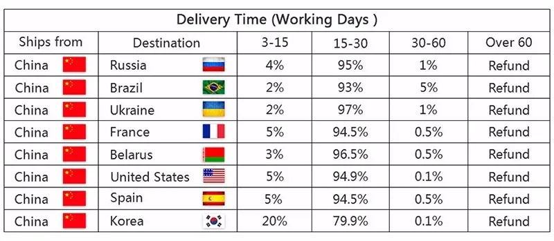 3) Если вы не можете проверить сразу после закрытия аукциона, пожалуйста, подождите несколько минут и повторите попытку, оплата должна быть завершена в течение 3 дней 1. Доставка по всему миру. (За исключением некоторых стран и армейской почтовой службы/почтовых отделений флота) 2. Заказы обрабатываются своевременно после подтверждения оплаты. 3. Мы отправляем только по подтвержденным адресам заказа. Ваш адрес заказа должен совпадать с вашим адресом доставки. 4. Представленные изображения не являются фактическим товаром и предназначены только для справки. 5. Время доставки определяется перевозчиком и не включает выходные и праздничные дни. Сроки доставки могут меняться, особенно во время курортного сезона. 6. Если вы не получили посылку в течение 30 дней с момента оплаты, пожалуйста, свяжитесь с нами. Мы Отследим доставку и свяжемся с Вами как можно скорее Возможно с ответом. Наша цель-удовлетворение клиентов! 7. Из-за наличия на складе и разницы во времени, мы выберем доставку Вашего товара с нашего первого доступного склада для быстрой доставки.