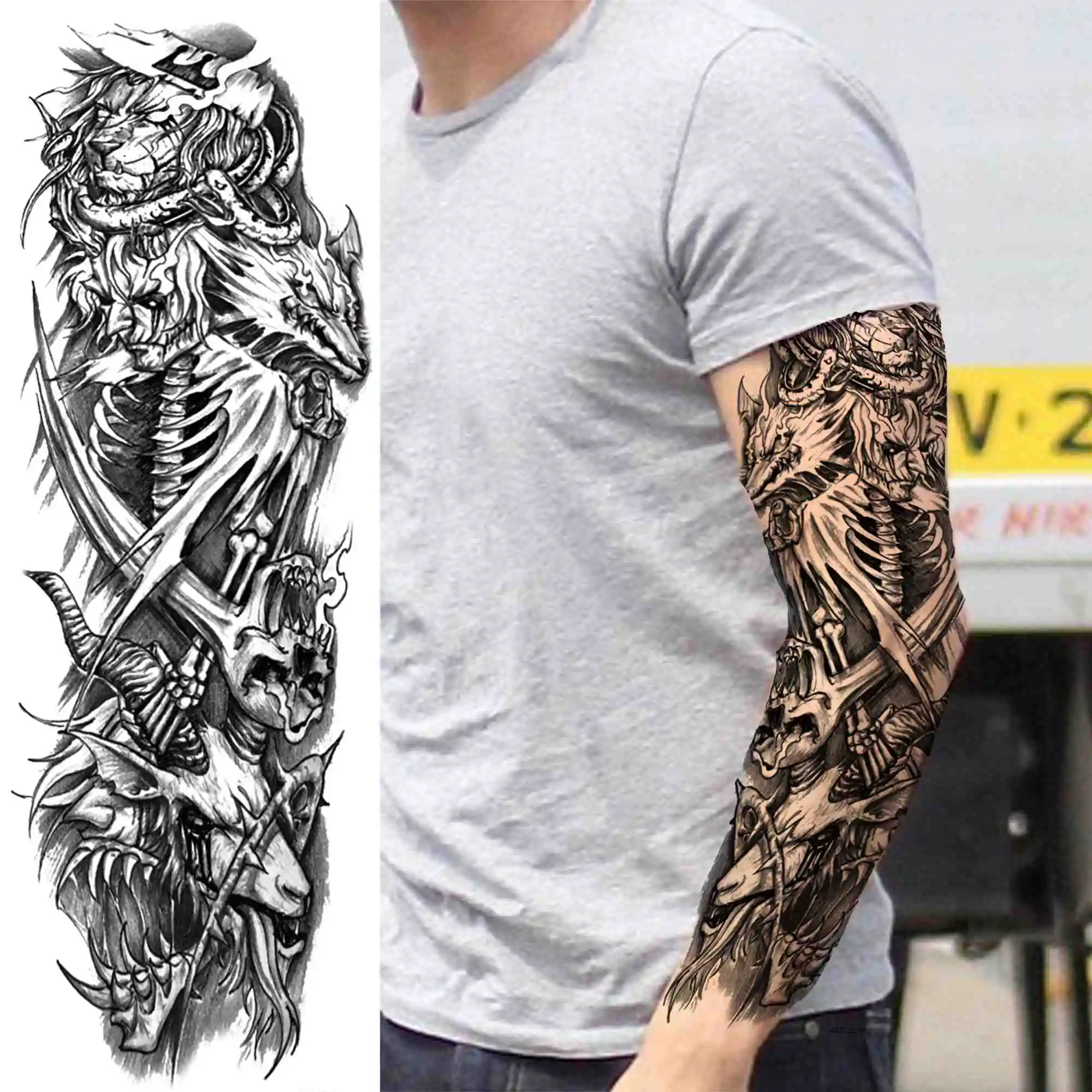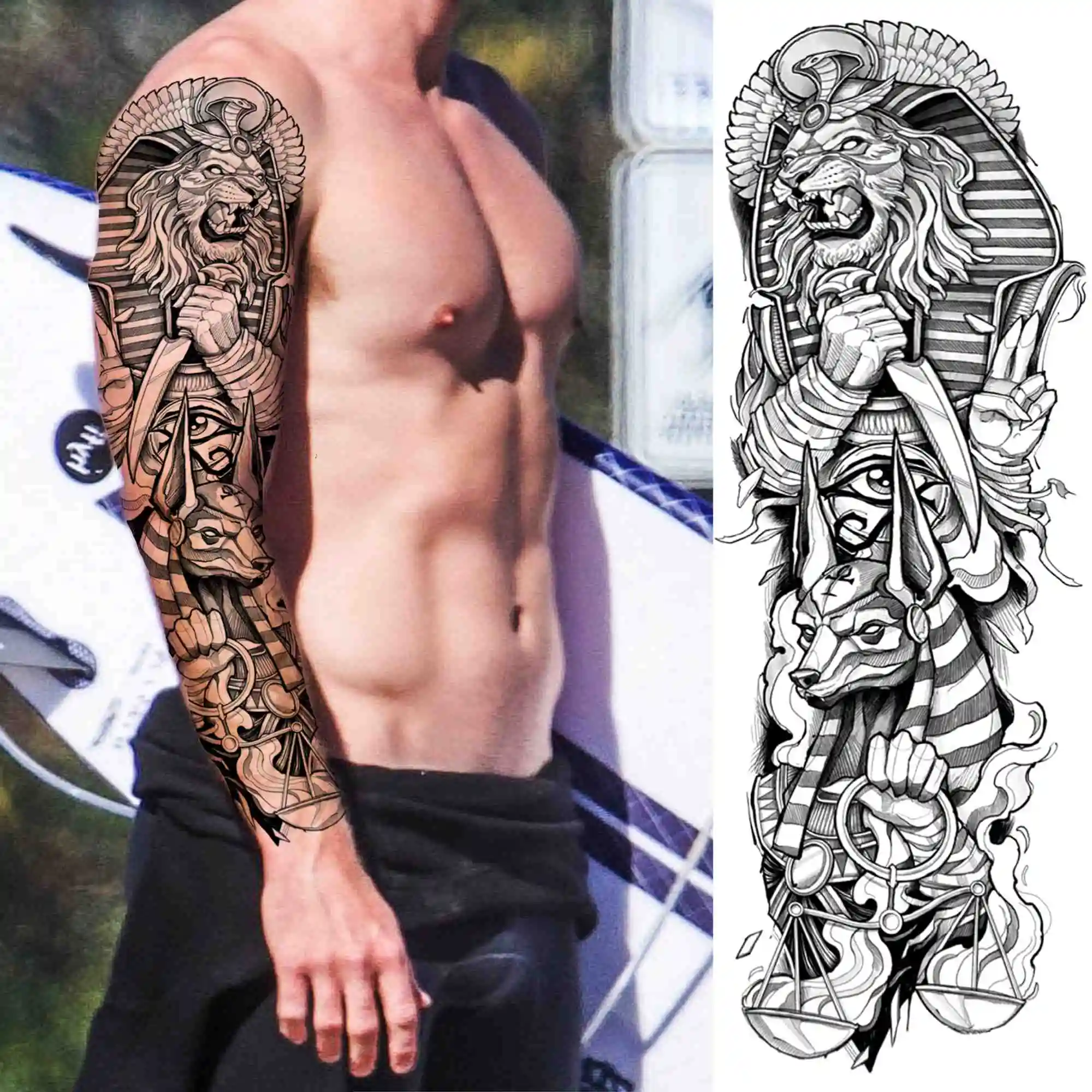 Лев Король Временные татуировки рукав для мужчин женщин мужчин взрослых племенные военные компасы поддельные татуировки стикер одноразовая полная татуировка на руку большой