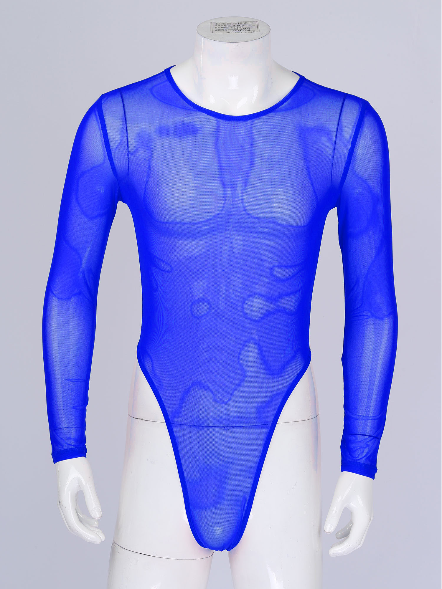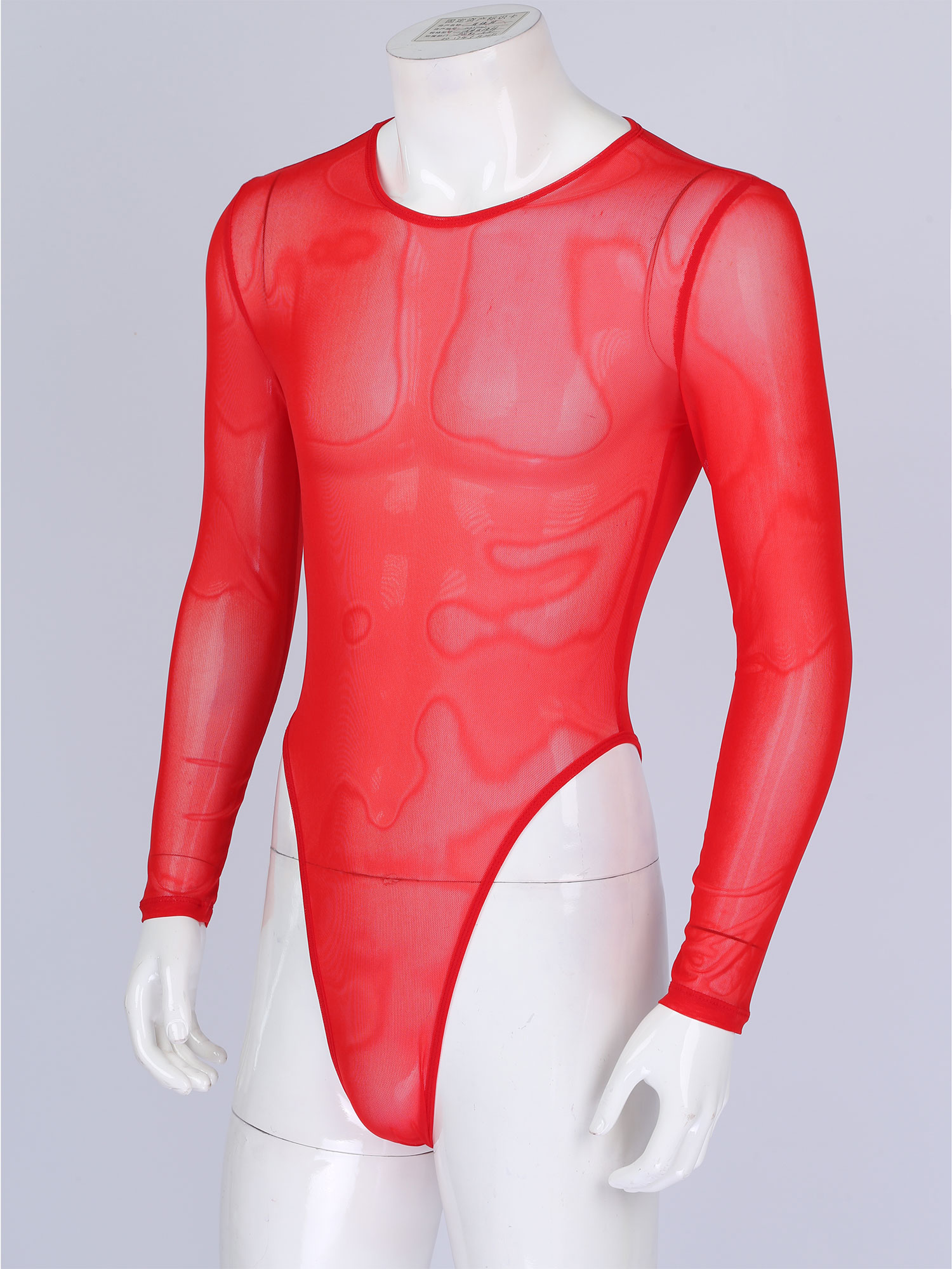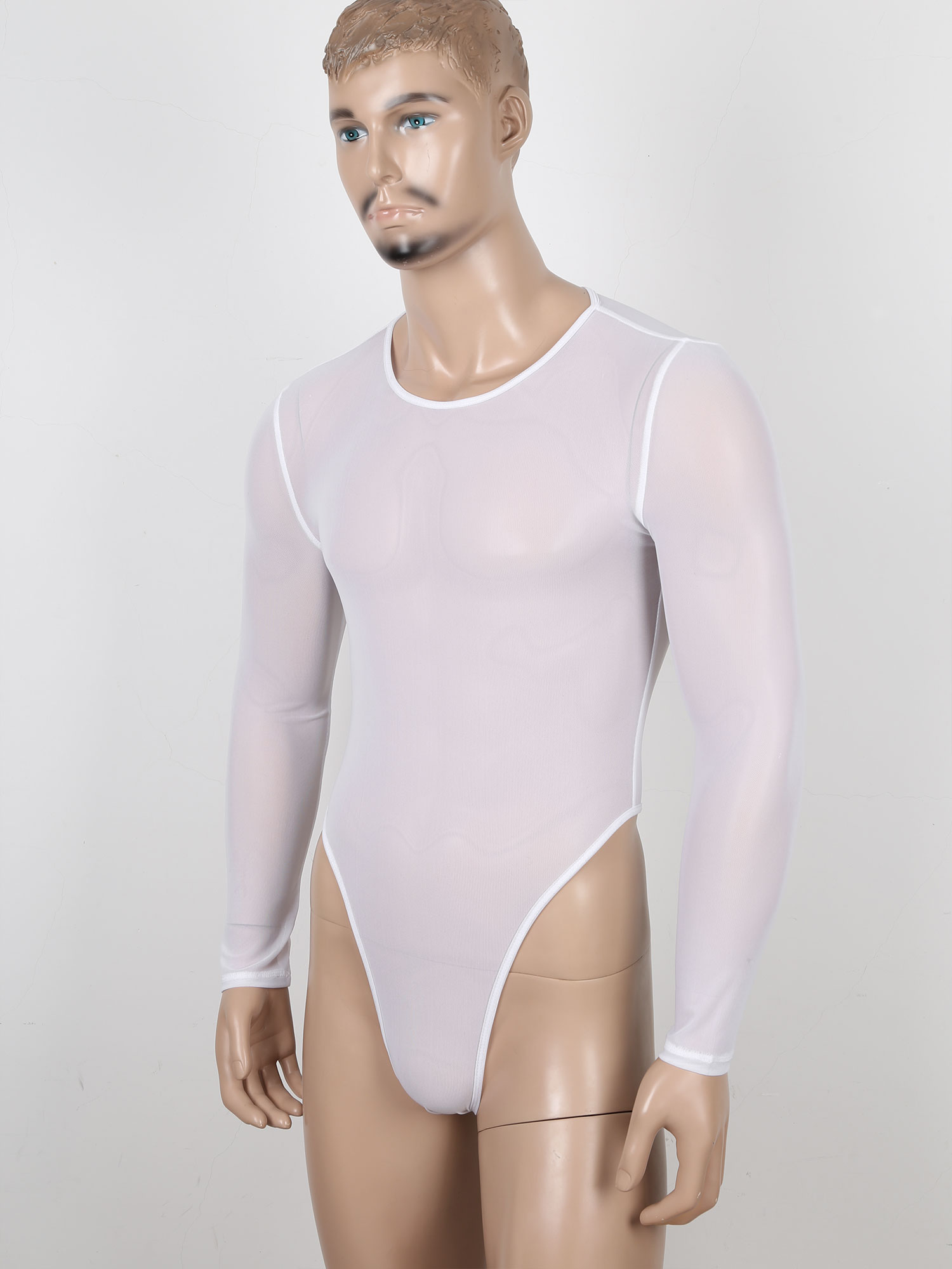 Мужское прозрачное Сетчатое боди, мужское цельное сексуальное нижнее белье, с длинным рукавом, с высоким вырезом, на молнии сзади, трико, комбинезон, одежда для сна