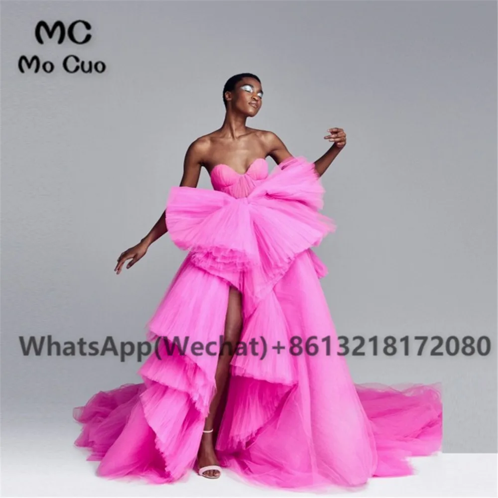 Abendkleider/Пышное Бальное Платье, Вечернее Платье, милое Сетчатое платье с большим бантом, ярко-розовые вечерние платья, фатиновое платье с баской, Vestido