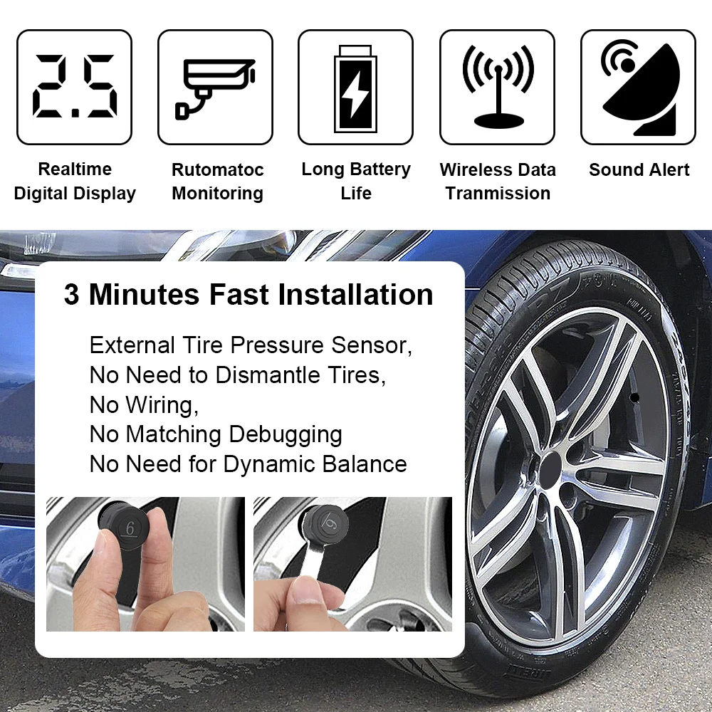 Параметры дисплея:Рабочая температура:(-30 ℃-80 ℃)Температура хранения:(-30 ℃-85 ℃)Вход: 5 В постоянного токаЧастота: 433,92 МГцПараметры датчика:Рабочая температура:(-30 ℃-60 ℃)Температура хранения:(-30 ℃-60 ℃)Диапазон давления: 0-116psi(0-8 бар)Точность давления: ± 1.5PSI(± 0.1bar)Точность температуры: ± 1 ℃Мощность: <10dbmЧастота: 433,92 МГцСрок службы батареи: 3 годаПосылка включает в себя:1 x Приемник6 x Внешний датчик6 x Противоугонная гайка1 х гаечный ключ1 х USB кабель1 х руководство на английском языке