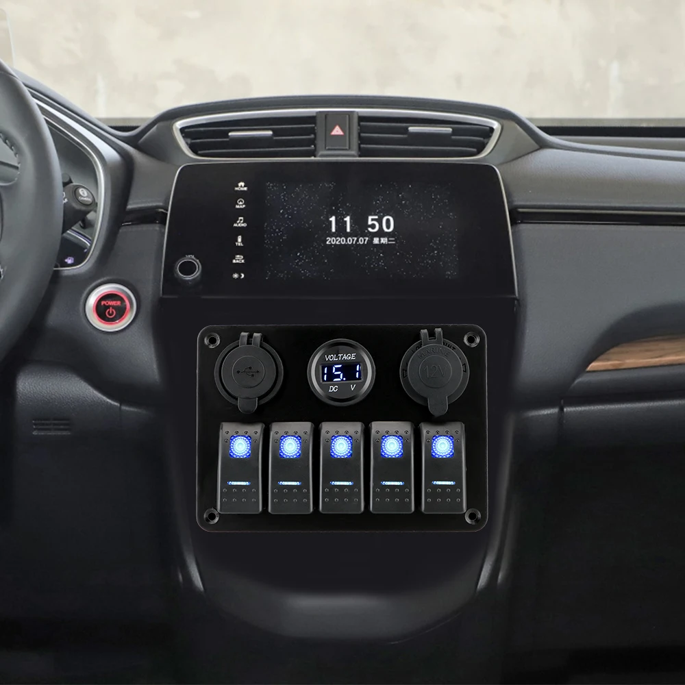 Панель переключателя для управления универсальным электрическим оборудованием в транспортном средстве: головной светильник, противотуманный светильник, светильник шириной, автомобильный переключатель для холодильника, автомобильный вакуумный выключатель, электрический для внешнего автомобильного оборудования, светильник прикуривателя er и так далее.