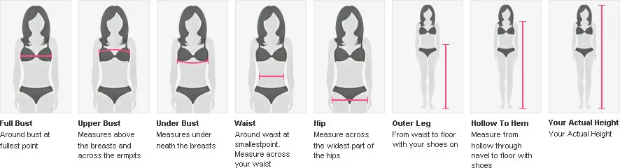 Таблица размеров платьев;