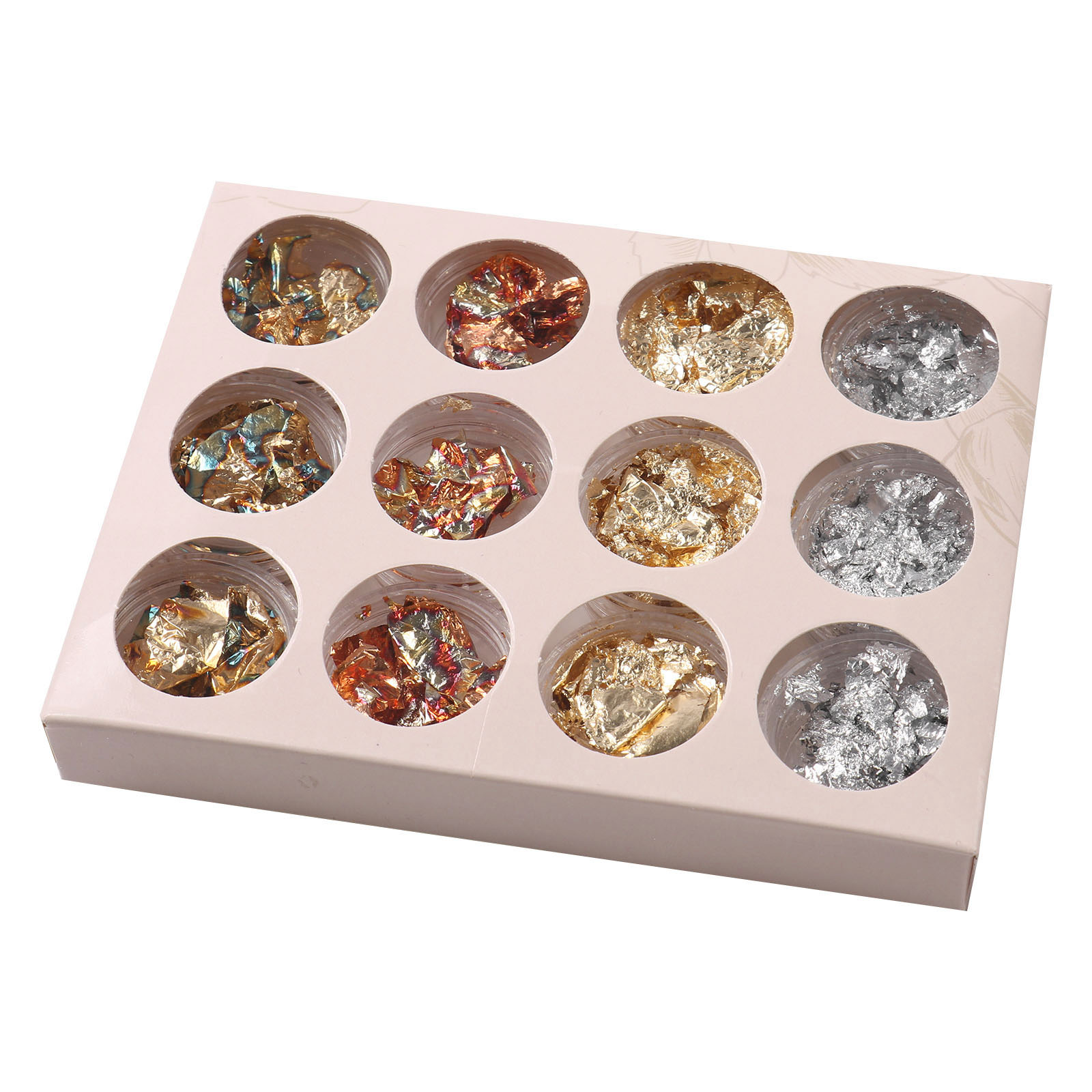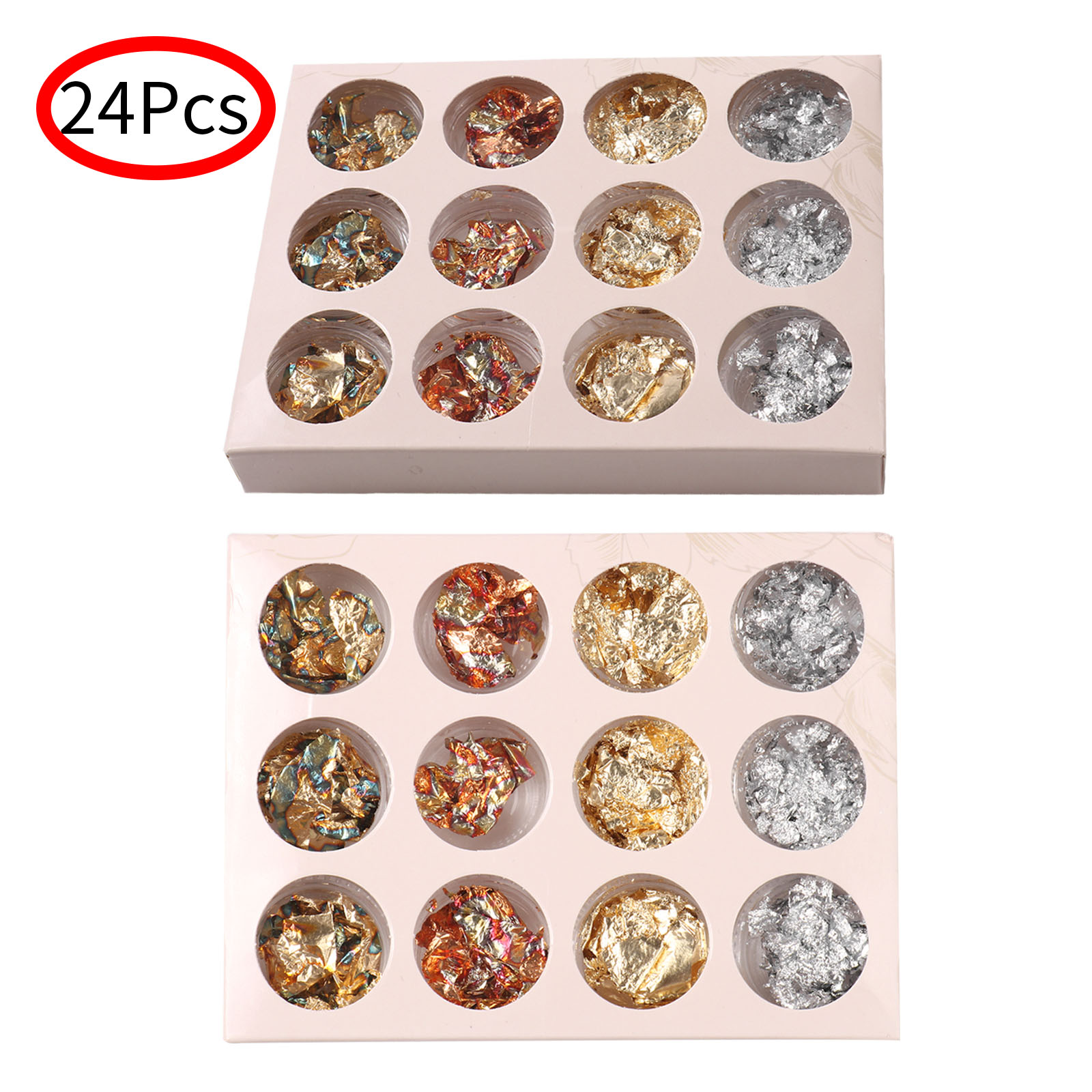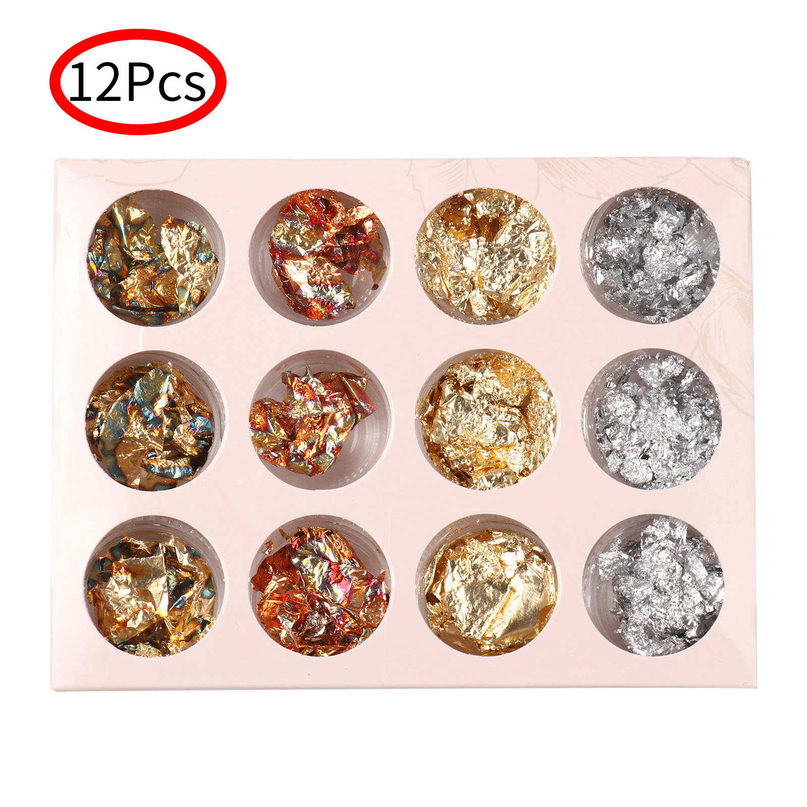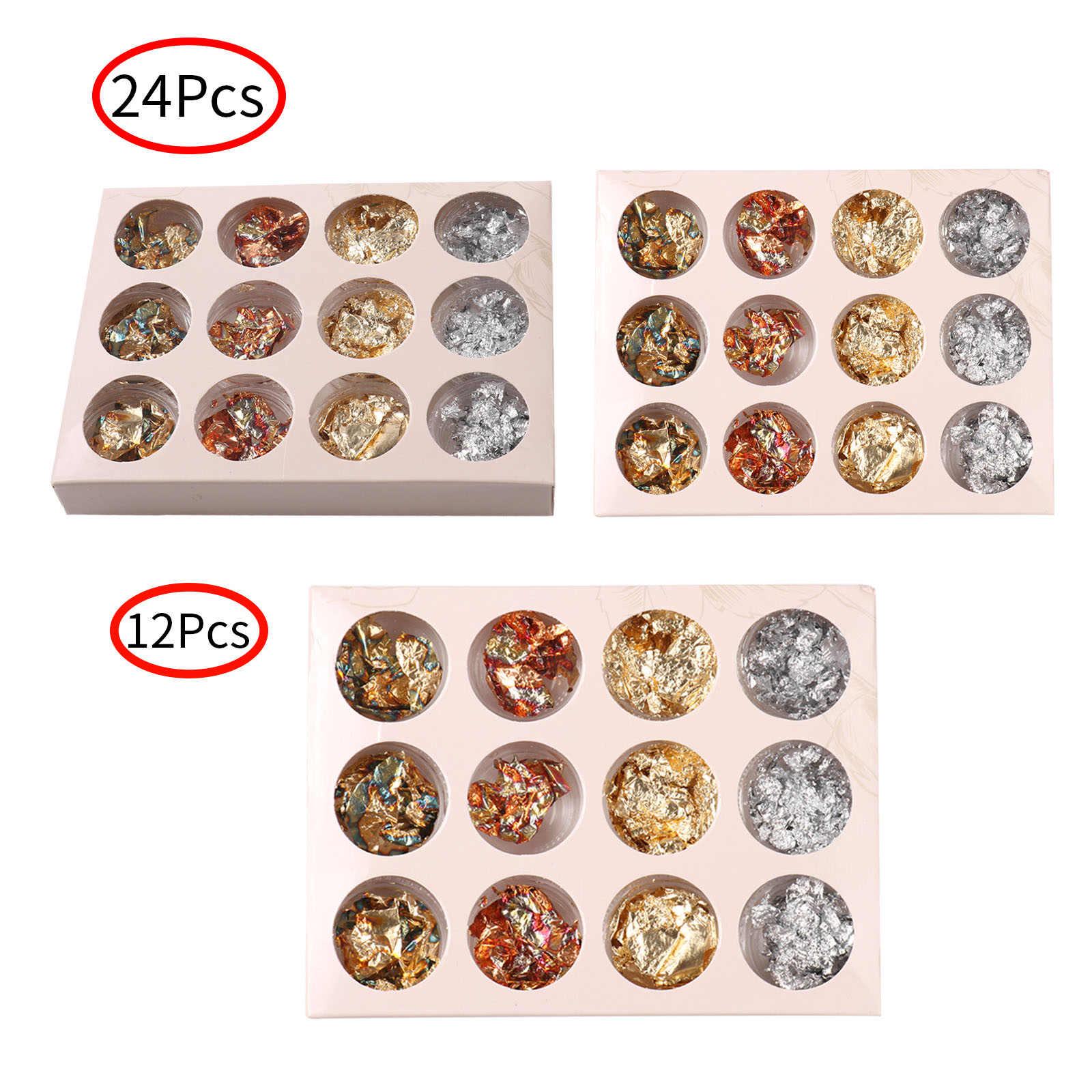 12 В/24 шт инструментов для ногтей с блестками чип сусальное золото Фольга блеск для ногтей Фольга хлопья для украшения ногтей и украшения.