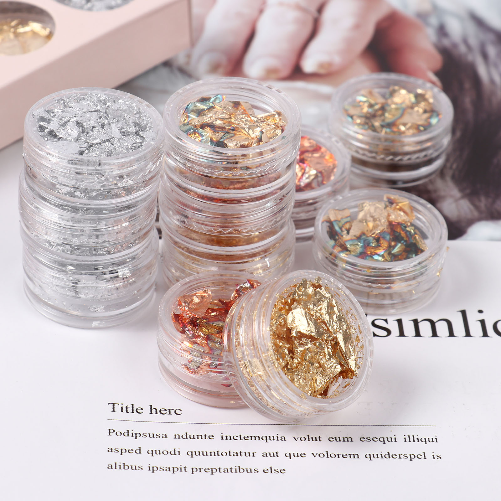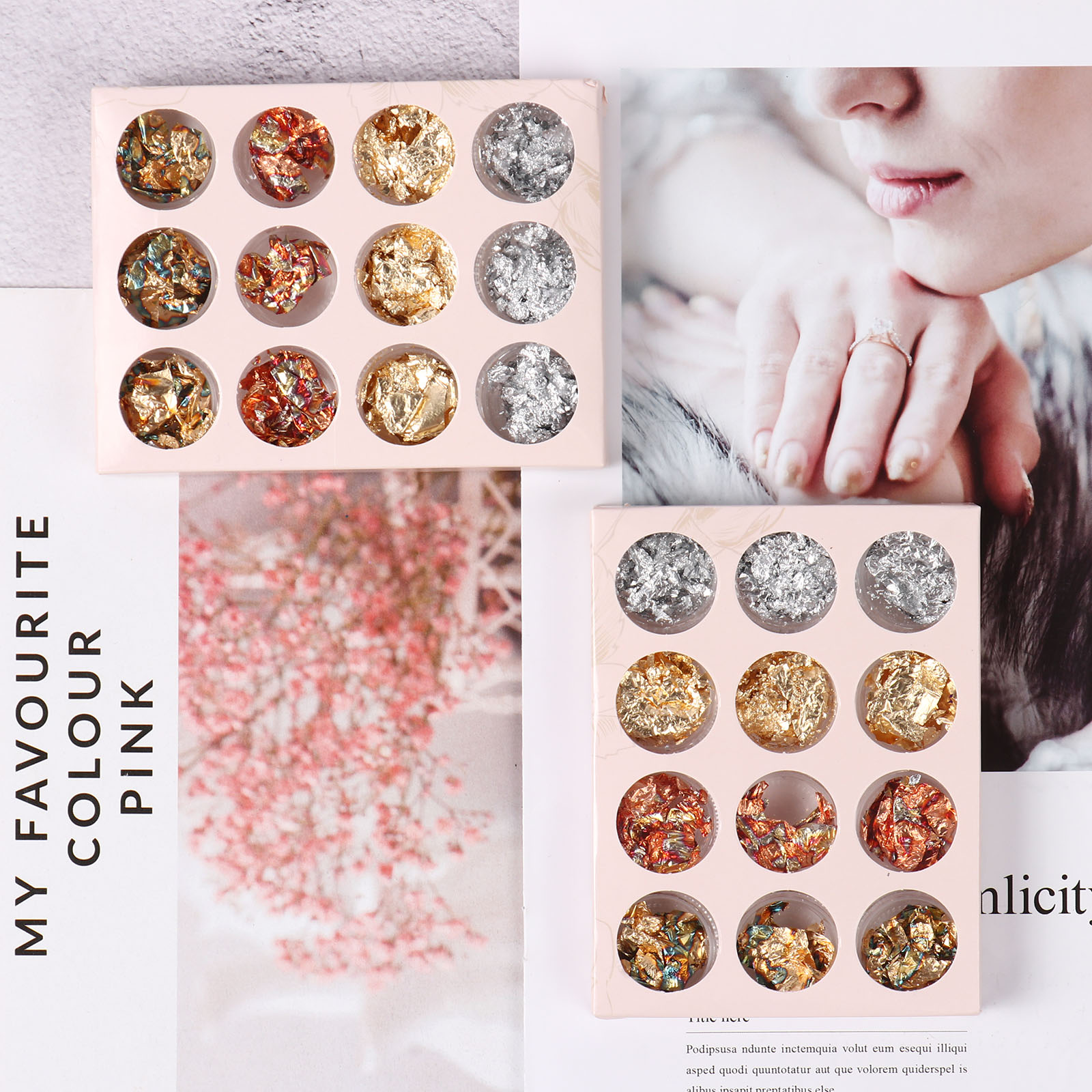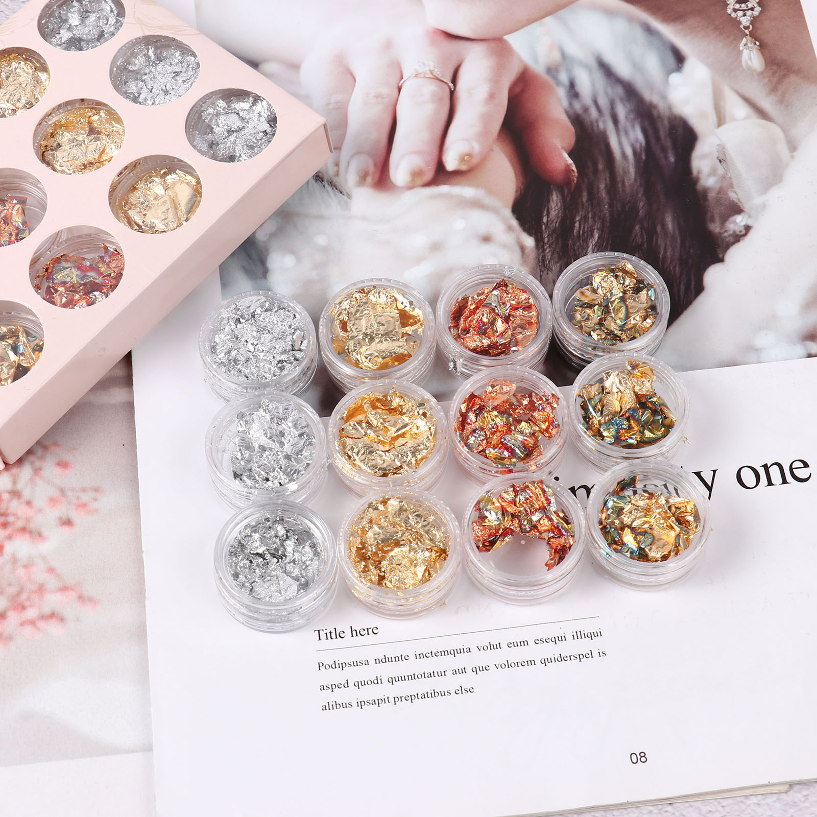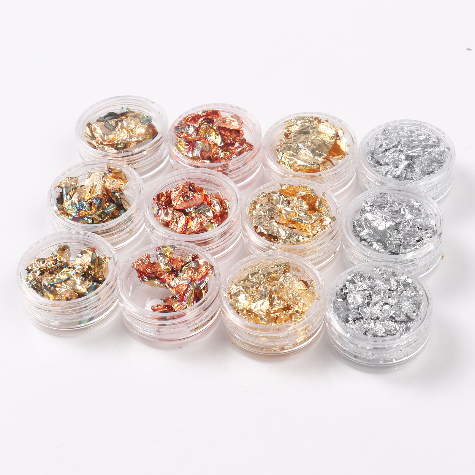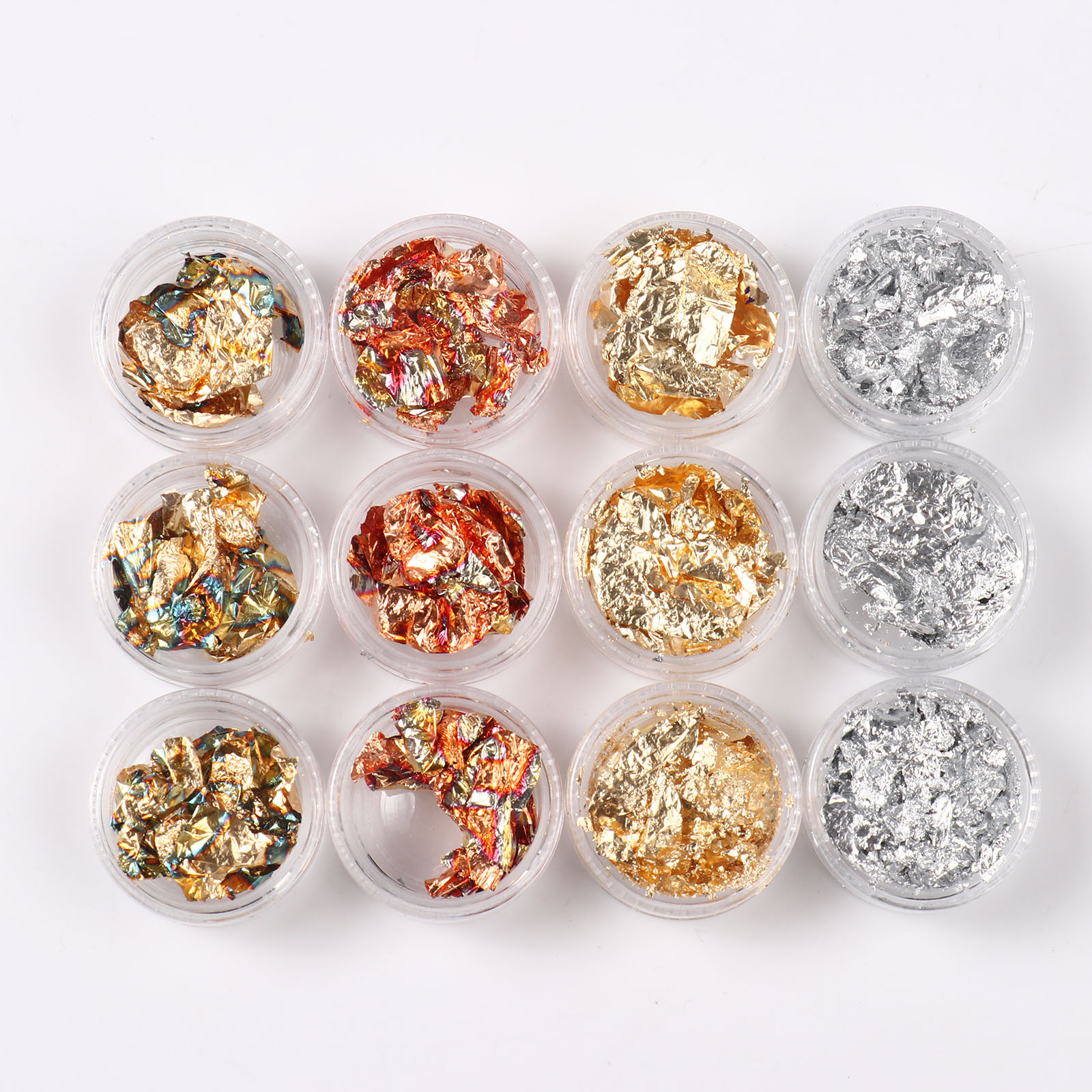 12 В/24 шт инструментов для ногтей с блестками чип сусальное золото Фольга блеск для ногтей Фольга хлопья для украшения ногтей и украшения.