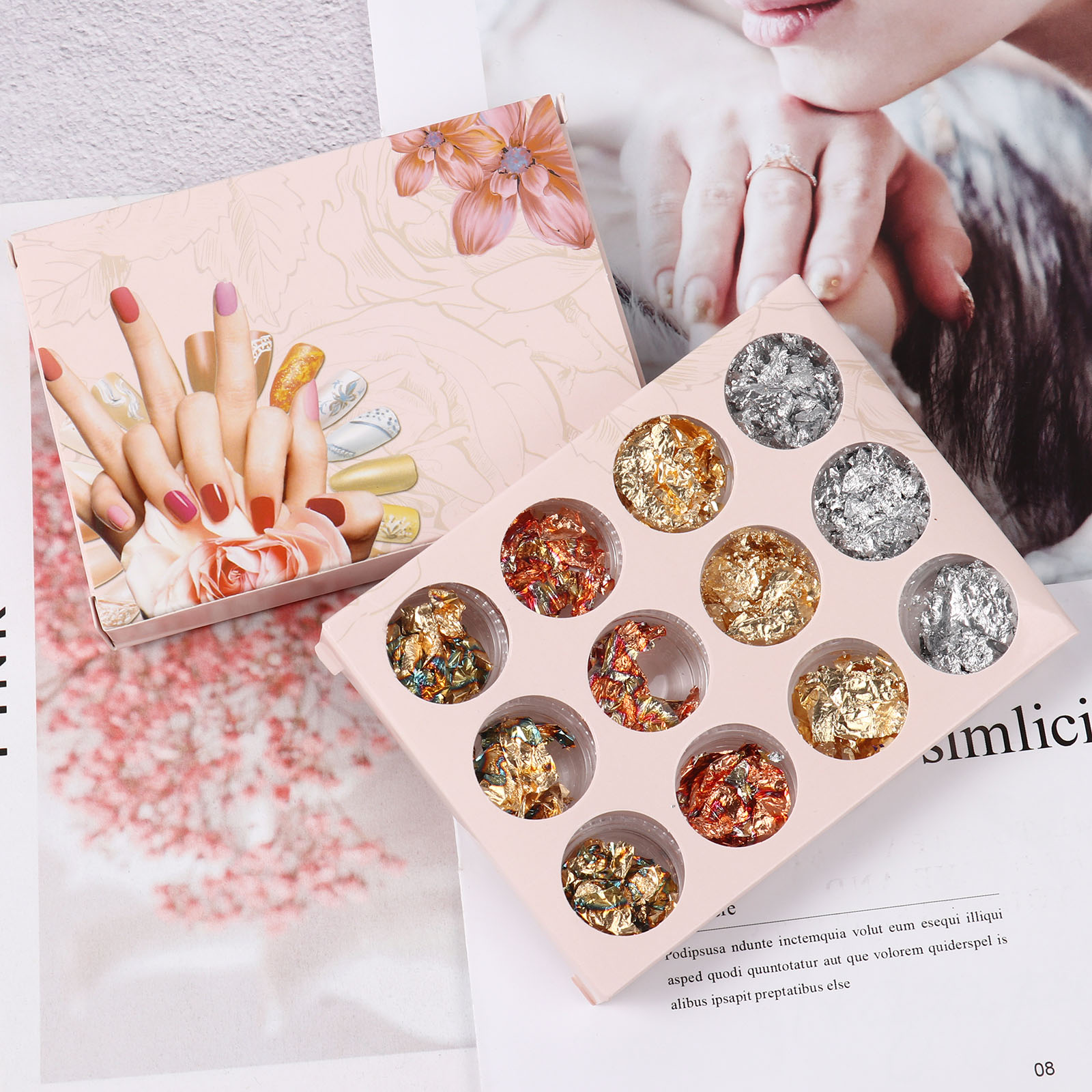 12/24 Блестки для ногтей, цветные золотые листья, фольга, декоративная бумага для ногтей, блестящие хлопья, сделай сам, карты для дизайна ногтей, ремесла, чешуйки, пайетки