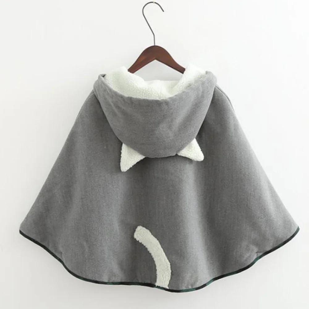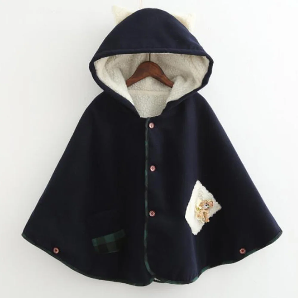 Название: Kawaii; Пальто накидки с капюшоном с заячьими ушками для девочек; Пончо; Женское Свободное пальто в японском стиле; Готическое флисовое пончо в стиле Лолиты; Темно-синяя накидка Сезон: весна-осень Пол: женские пончо Повод: повседневный, японский стиль, Kawaii Тип узора: животное Содержимое упаковки: только 1 пончо