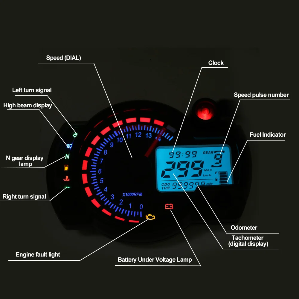 Функции в одном элементе 】: Этот измеритель двигателя имеет тахометр, спидометр
