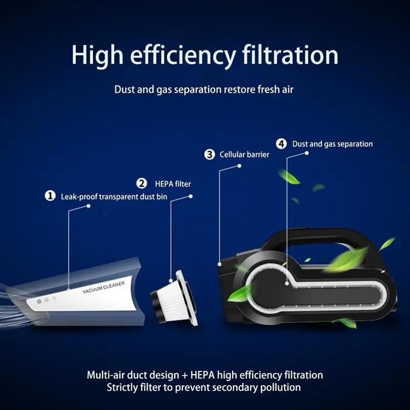 2. Поддерживает сухое и влажное Применение: 3 аксессуара (длинный рот, кисть, мягкая длинная трубка), позволяют легче чистить и могут очистить каждый уголок в вашем автомобиле. Он может легко очищать пыль, крошку, волосы домашних животных, а также жидкости.