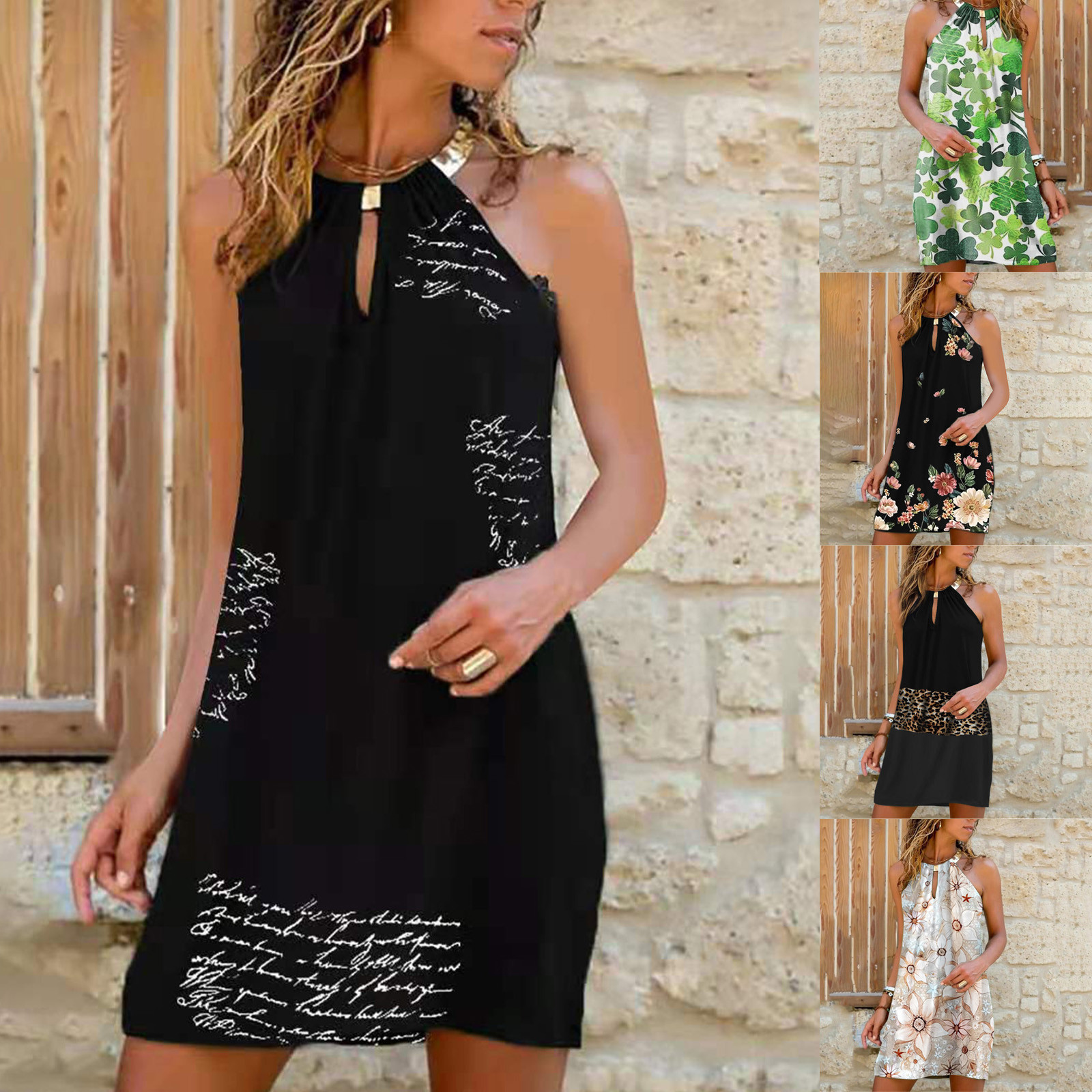 Модное женское летнее Повседневное платье без бретелек с металлической подвеской на шее