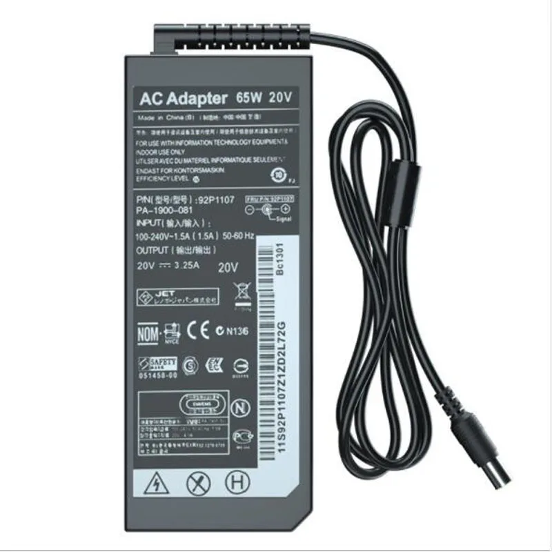 Особенности100% новый товар высокого качества.Изготовлен из качественных компонентов и монтажной платыБезопасный и прочный.Высокое Точное выходное напряжение, небольшие волны и низкие помехи.Встроенный микросхема ИС обеспечивает защиту от перезаряда, короткого замыкания, защиты от перегрузки, защиты от перегрева.Спецификация товараВход: 100-240 В/50-60 ГцВыход: 20V - 3.25AМощность Адаптера: 65 ВтШтекерный наконечник Размеры: 7,9 мм * 5,5 мм