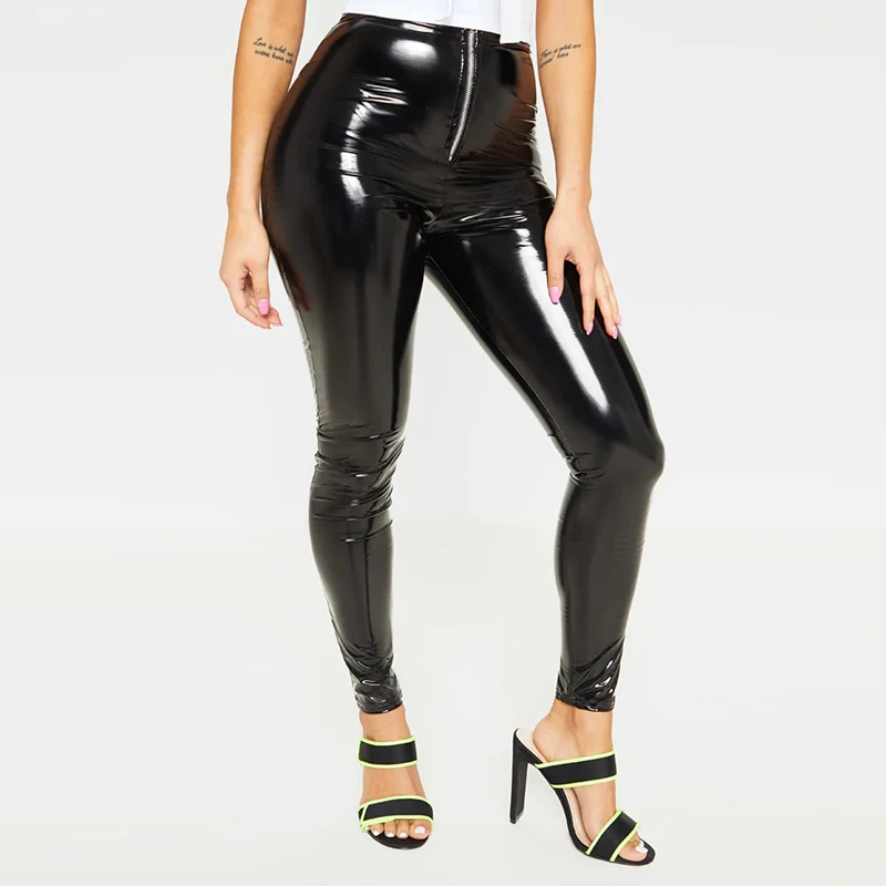 Узкие брюки из искусственной кожи на молнии спереди