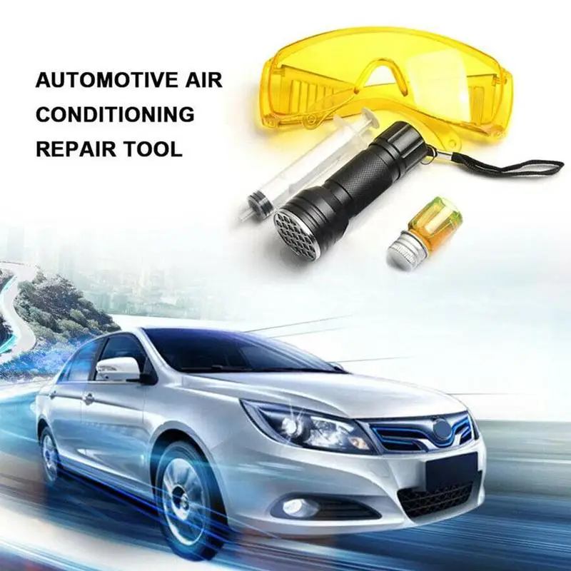 Автомобильный Кондиционер воздуха Система C тест-детектор утечки комплект 21 Светодиодный УФ-Фонарик защитные очки инструмент для красителя набор