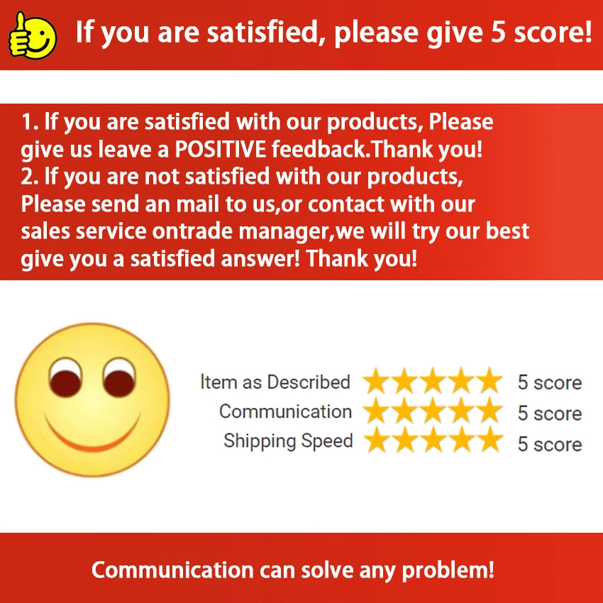 Мы поддерживаем высокие стандарты качества и стремимся к 100% удовлетворенности клиентов! Отзывы покупателей очень важны. Мы просим вас, ПРЕЖДЕ чем оставлять нам нейтральный или отрицательный отзыв, связаться с нами, чтобы мы могли разрешить проблему к общему удовольствию.