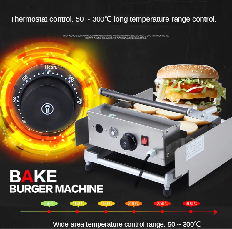 Машина для выпечки используется для нагревания хлеба (6 гамбургеров за раз), так что гамбургер имеет определенную температуру для повышения вкуса. Он использует высокую температуру для нагрева хлеба в течение короткого периода времени, так что сырье в хлебе может быть испечено без испарения слишком много воды, позволяет потребителю почувствовать запах и не сушить и освежать.