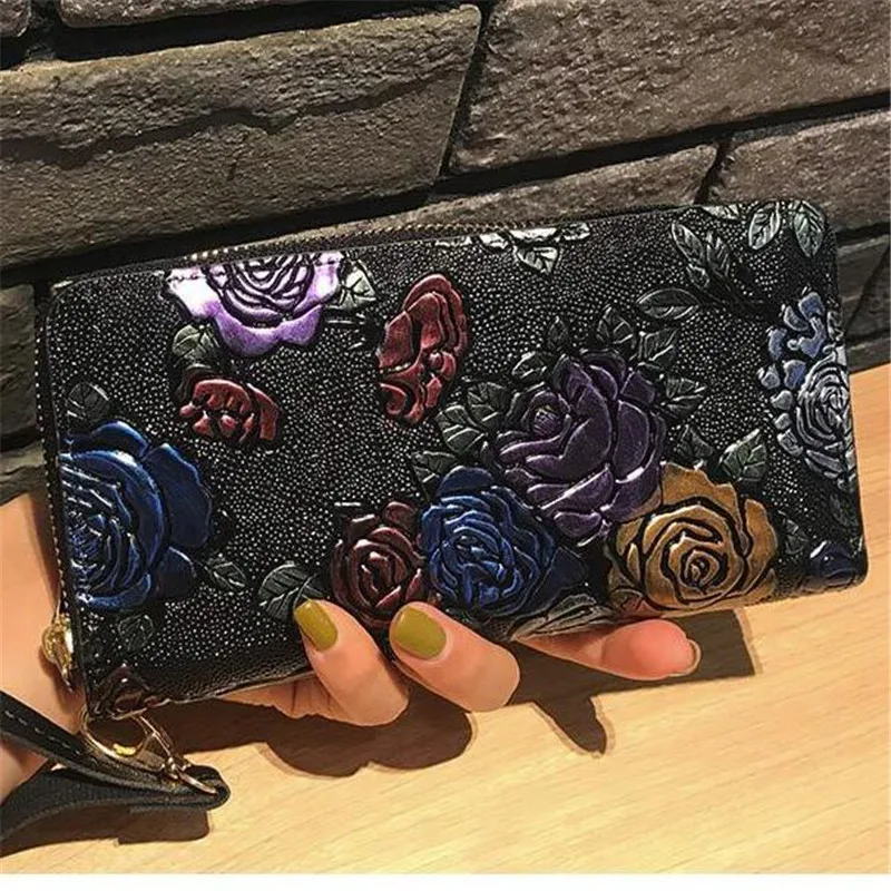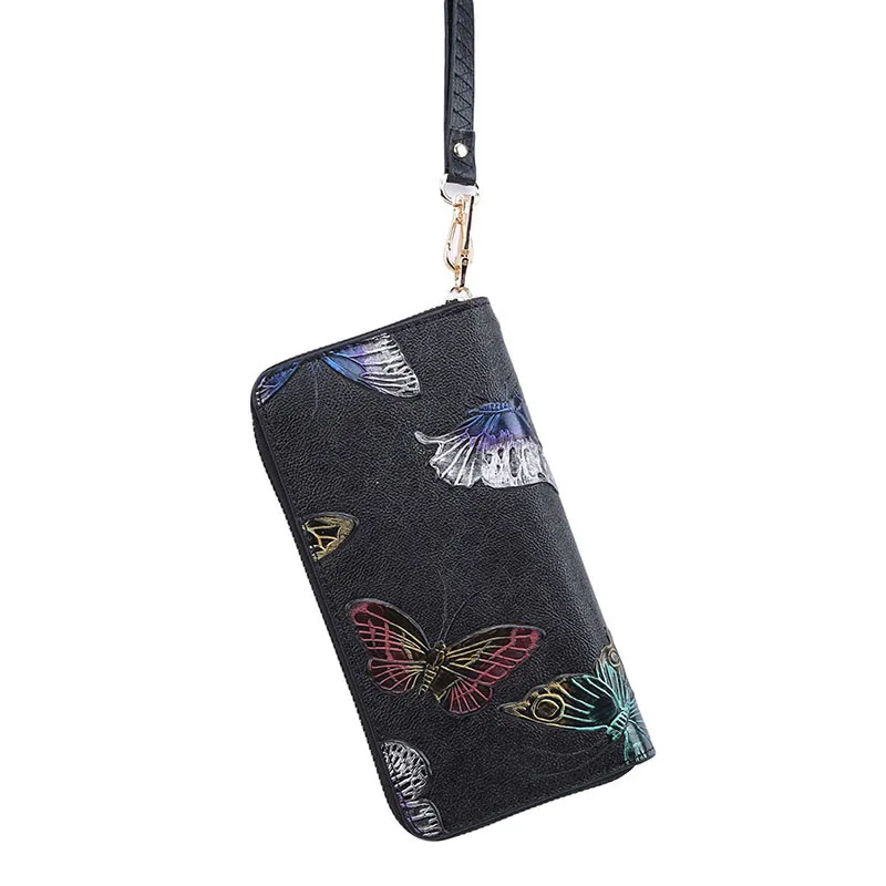 Новый женский длинный кошелек из натуральной кожи с 3D тиснением роза Стрекоза бабочка Дамский клатч большой вместительный женский кошелек на молнии